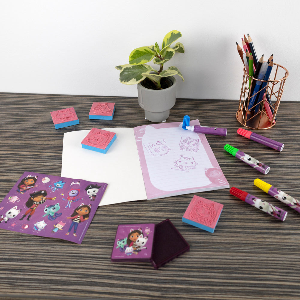 Förgyll barnens lekstunder med Gabby's Dollhouse stämpelset från Undercover. Detta underbara kreativitetsset är perfekt för att inspirera till kreativitet och inlärning hos de yngsta. Med fyra olika frimärken, ett stämpelblock, färgglada klistermärken, en målarbok och fem kritor är detta kit utformat för att engagera barn på ett interaktivt och utbildande sätt, anpassat för barns förmågor och intressen.