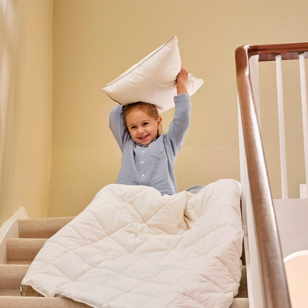 Ge din lilla älskling komfort och säkerhet under sömn med Moonboon Bambu Kudde. Tillverkad med en blandning av bambu och polyfiber garanterar denna kudde både mjukhet och hållbarhet. Bambuns naturliga egenskaper säkerställer utmärkt andningsförmåga och komfort, samtidigt som den är skonsam mot barnets känsliga hud med sitt överdrag av 100% ekologisk bomull. Certifierad med OCS Blended-logotypen, lovar vi att din produkt är tillverkad med miljövänliga och hållbara metoder. Den praktiska designen inkluderar olika storlekar (baby och junior) och gör kudden lämplig för användning under flera år. Enkel i skötseln, Moonboon kudden kan maskintvättas vid 60°C och tål mild torktumling, vilket gör den till ett bekymmersfritt tillägg i varje barnrum. Unna ditt barn den ultimata komforten och en rofylld sömn varje natt med denna premiumkudde från Moonboon.