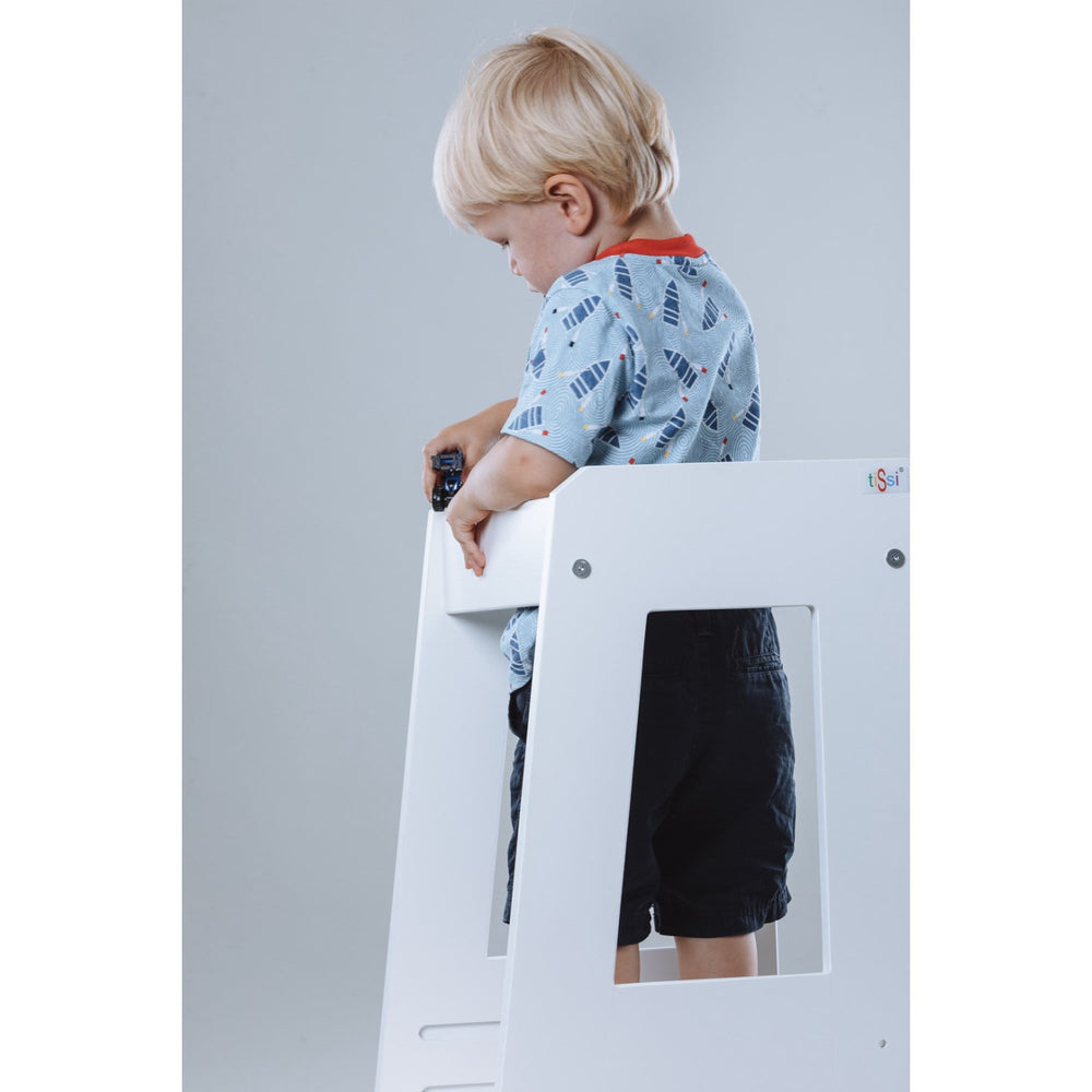 Upptäck tiSsi® White Laquer Felix Lärande Torn i massiv bok, ett säkert och funktionellt tillägg till ditt barns rum. Detta innovativa lärtorn har designats för att växa tillsammans med ditt barn, lyftandes dem till optimal position för att delta i kökets aktiviteter. Från att förbereda mat tillsammans till att umgås vid bordet, ger tornet ditt barn en möjlighet att utveckla sociala och praktiska färdigheter i en tidig ålder. Med justerbara höjder och en maximal belastning på 250 kg, är tiSsi® lärtorn både säkert och ergonomiskt, anpassat för barn från 1 till 4 år. Ett perfekt sätt att stimulera ditt barns lärande och delaktighet i dagliga rutiner. Material: Massiv bok vitlack Mått: Storlek 40 x 91 x 39 cm Tvättråd: tiSsi® inlärningstornet ska endast torkas av med adamp trasa och sedan gnuggas med en torr trasa. Färgerna på tiSsi® kan ändras på grund av för mycket solljus Certifieringar: Ekologiskt, miljövänligt och hållbart producerat