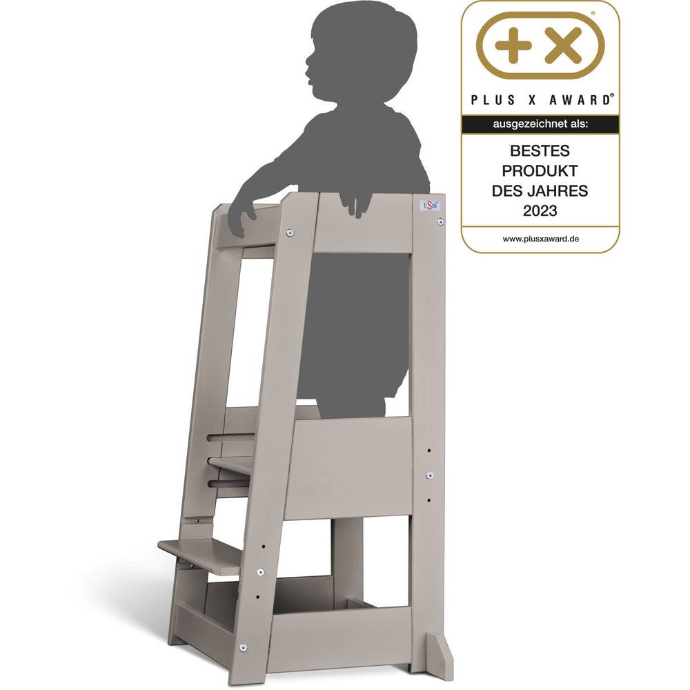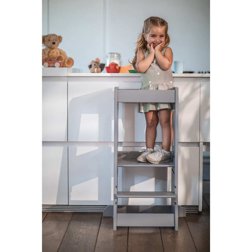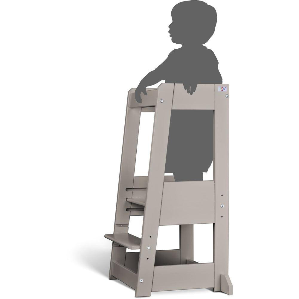 Förbättra ditt barns vardag och samspel i hemmet med tiSsi® Stormy Grey Laquer Felix Lärande Torn i massiv bok. En säker och stabil plattform som möjliggör aktiv delaktighet i köket och ger första hands erfarenheter. Tornet är anpassbart i höjd vilket säkerställer att det kan växa med barnet, från 1 till 4 år, med en maxbelastning på 250 kg. Dess ergonomiska design främjar en korrekt kroppshållning samtidigt som barnet engageras i matlagning eller andra hushållssysslorna, vilket stimulerar både deras motoriska färdigheter och sociala utveckling. Ett, inte bara praktiskt, utan även vackert tillägg i varje barnkammare med sin sofistikerade grå finish.