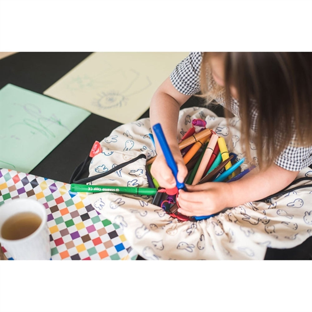 Oppdag den søte Miffy minioppbevaringsvesken! Miffy elsker alltid lek, eventyr og å utforske. Noe som gjør henne til den perfekte lekekameraten i våre øyne. Mini Miffy-vesken kan oppbevare alle favorittlekene, klossene og klossene dine og gjør det enkelt å bære den fra rom til rom. Ikke bekymre deg for rotet: Når du åpner Mini-vesken, forhindrer kanten at ting søles ut. ute. Det er også flott for kunst og amp; håndverksmaterialer, store nok til å holde alle slags blyanter og tusjer. Når det er på tide å dra, er det bare å trekke i trådene og alt kan pent settes bort. Et fantastisk samarbeid mellom Play&Go & Miffy, for å feire Miffys endeløse lekenhet og nysgjerrighet og inspirere barnet ditt til å gjøre det samme.