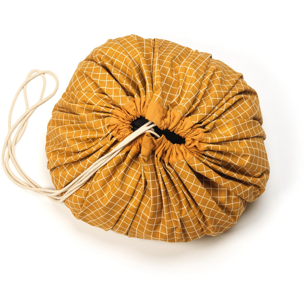 Play&Go Organic Grid Mustard 2-in-1 Lek Matta är mer än bara en leksak; den är en plats för kreativitet och utveckling, perfekt för både lek och förvaring.