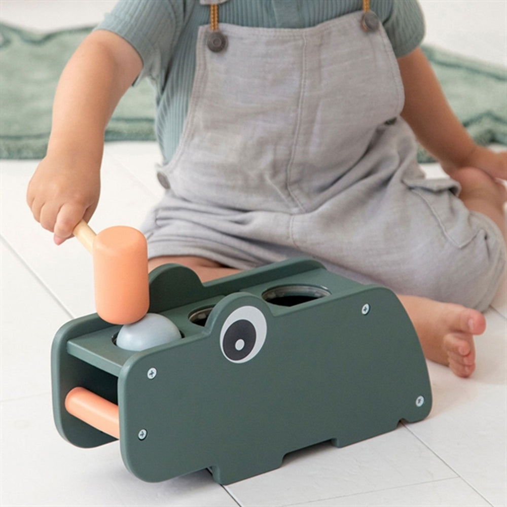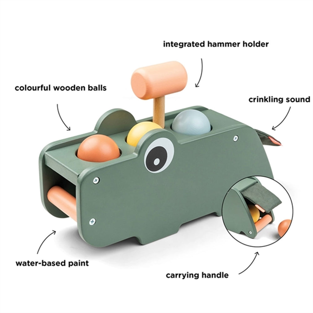 Croco hammerboard är mer än bara underhållning. Den har dubbla handtag som gör det smidigt för ditt barn att bära med sig leksaken på olika äventyr. Handtagen sitter på båda sidor om krokodilen – bak för att enkelt kunna ta med sig spelbrädan och fram för att tappa ut bollarna på nytt och plocka upp dem igen. Detta skapar en interaktiv lek som aldrig tar slut.
