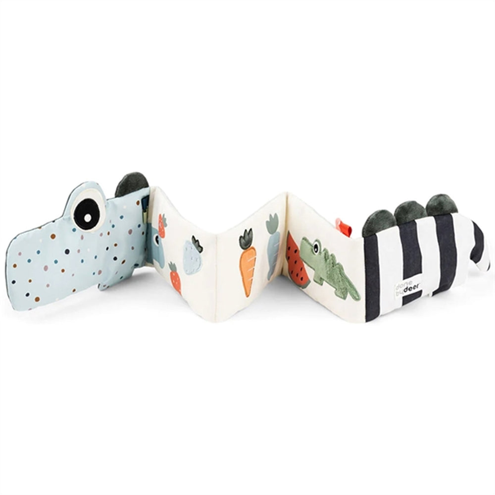 Done by Deer Stofbog Croco Green är lätt att ta med sig och kan enkelt fästas på barnvagnen eller bilbarnstolen, vilket gör den till en utmärkt följeslagare både hemma och på resor. Boken är också enkel att underhålla; den kan tvättas i maskin vilket gör det enkelt att hålla den ren och fräsch. Ge ditt barn en underbar start på lärandet med denna underbara och engagerande tygbok.