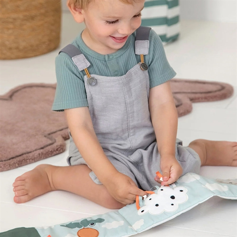 Bokens många olika färger och texturer stimulerar barnets sinnesutveckling samtidigt som de roliga och interaktiva elementen, såsom klaffar och olika typer av fästen, uppmuntrar till utforskning. Det pedagogiska värdet är stort då boken hjälper till att utveckla finmotorik och koordinationsförmåga på ett lekfullt sätt.
