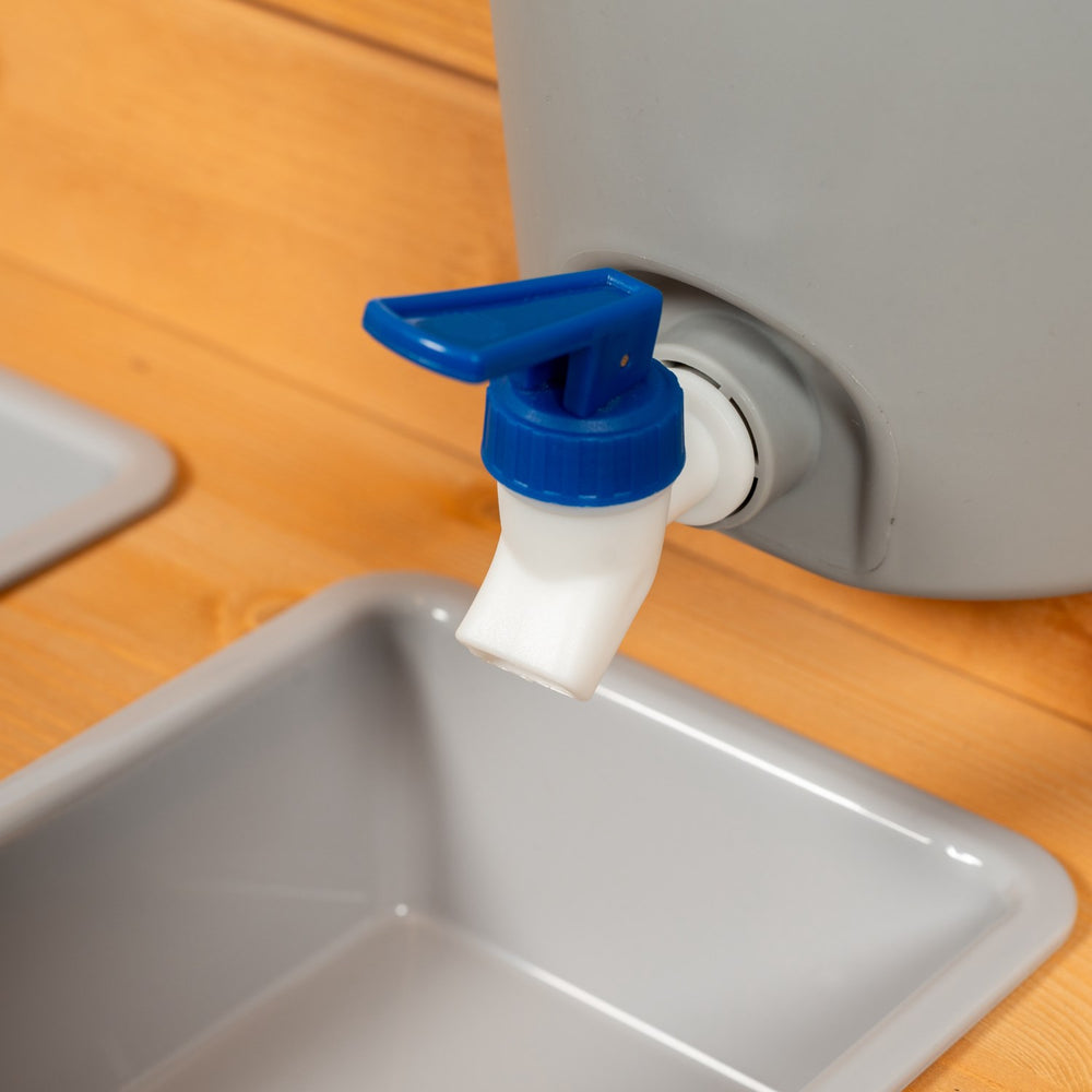 Introducera barnen till glädjen med utomhuslek med Mamamemo Utekök, en robust och attraktiv tillägg till vilken trädgård eller lekplats som helst. Tillverkat av massivt trä ger detta lerkök en säker och pålitlig yta för barn att utforska sin fantasi genom matlagning. Lerköket är utrustat med en vattentank som enkelt kan öppnas för påfyllning, vilket underlättar interaktiva vattenlekar. Med tillhörande två skålar tillåts barnen blanda ingredienser eller vatten, vilket engagerar dem i en praktisk lek som även stimulerar deras kreativitet och motoriska färdigheter. De justerbara handtagen på spisen bidrar till känslan av äkthet och erbjuder även en chans för barnen att lära sig om olika köksfunktioner på ett säkert sätt. Det praktiska och lätthanterliga designen säkerställer att Mamamemo Utekök enkelt kan flyttas och förvaras, vilket är idealiskt för varierande utomhusförhållanden och säsongsspel. Dess underhåll är enkelt tack vare högkvalitativa material och robust konstruktion, som också garanterar dess långvariga hållbarhet i alla slags väder. Mamamemo Uteköket är inte bara en plats för barn att ha kul—det är en pedagogisk resurs som uppmuntrar till självständighet och social interaktion. Detta lekkök är perfekt för barn i olika åldrar och passar utmärkt för att utveckla både finmotorik och samarbetsförmåga. Ett tryggt och lärorikt tillskott till varje utomhuslek.