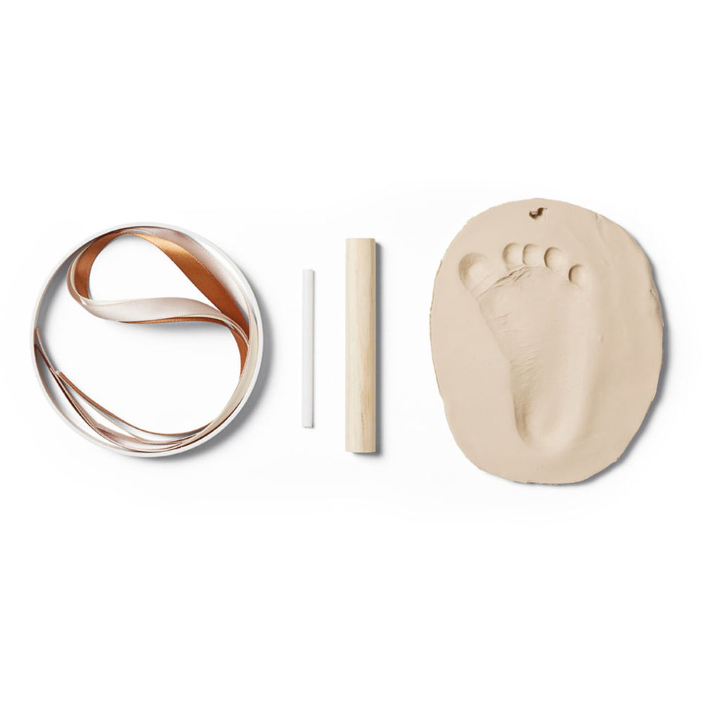 I kitet ingår 1 paket lera, 1 trärulle för att forma leran, 1 PP-skärare till avtrycken, samt 3 dekorativa band för att fullända ditt minnesverk. Med sitt kompakta format är det lätt att förvara eller ta med sig för att skapa minnen var som helst. Material: Giftfri Lufttorr Lera - Band - Beige - Brun Mått: Diameter 11 cm