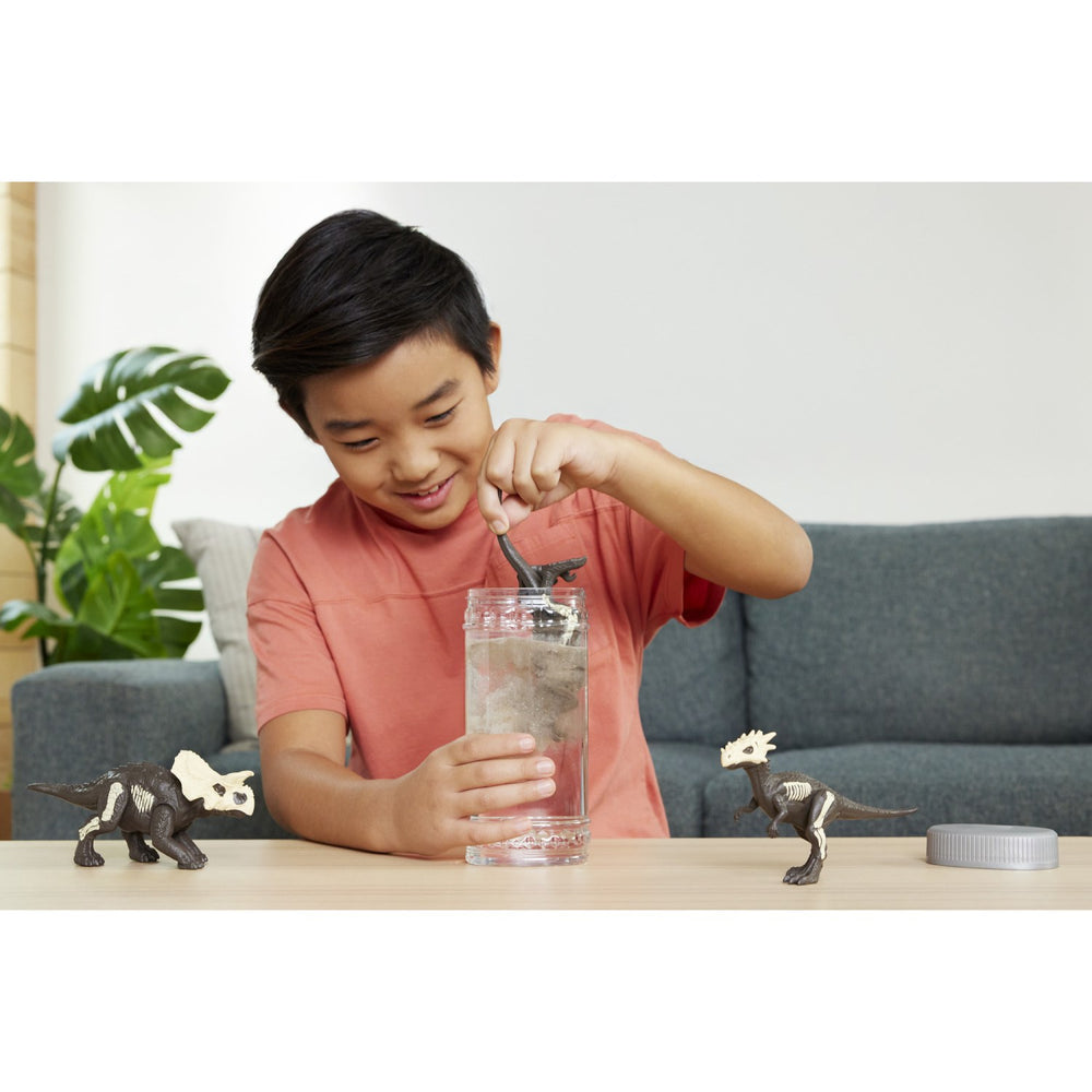 Upptäck den spännande världen av dinosaurier med Jurassic World Dino Reveal-dinosaurieleksaken! Denna unika leksak är en perfekt gåva för nyfikna barn som älskar att utforska och lära sig genom lek. Förpackad i ett rörformat paket som påminner om en dinosaurie-DNA-behållare, erbjuder varje leksak en överraskande upplevelse vid uppackningen. Barnen får chansen att upptäcka vilken mysteriedinosaurie som döljer sig inuti.