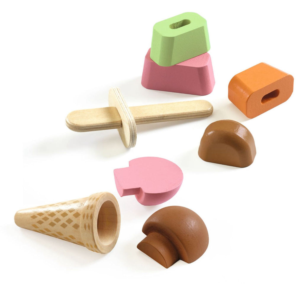 Låt barnen öva på färgigenkänning och hand-öga-koordination genom att matcha och arrangera olika glassorter. Den robusta träkonstruktionen säkerställer lång hållbarhet, samtidigt som de mjuka hörnen och det giftfria materialet gör det säkert för barn från tre år och uppåt. Leksaken främjar även sociala färdigheter och kreativt tänkande då flera barn kan leka tillsammans.