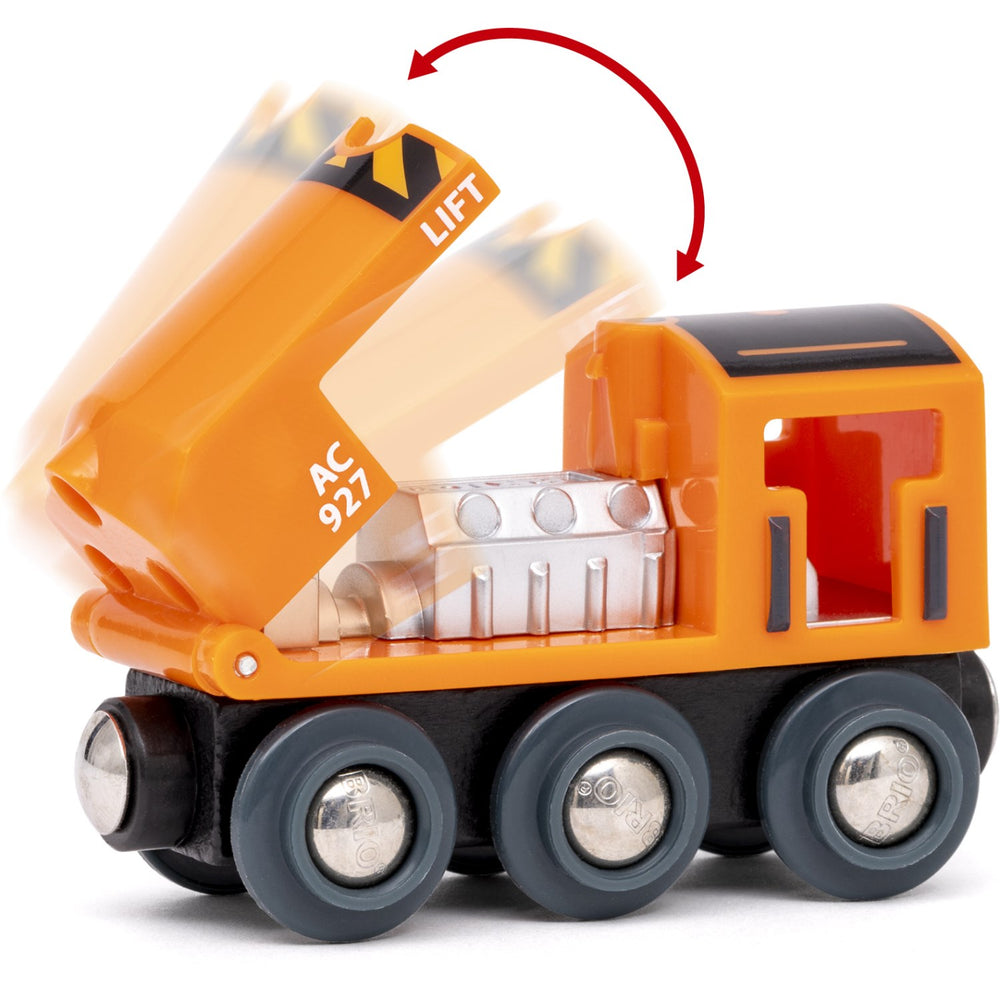 Med detta set får barn möjlighet att använda en kran utrustad med en magnet för att flytta laster mellan tåg, lastbilar och vagnar. Interaktiviteten och engagemanget i leken främjas ytterligare genom den färgglada designen och de rörliga delarna som håller barnet intresserat och engagerat.