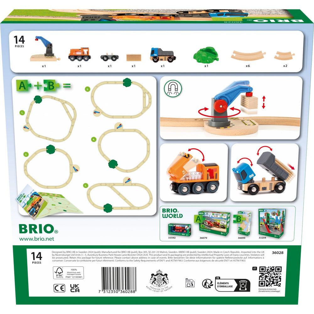 Upptäck BRIO® 36028 Startsæt Løft & Læs – en förtrollande värld av kreativitet och lek för de små. Detta leksakstågset från BRIO är perfekt för att introducera barn till de spännande möjligheterna med BRIO World, där de får utforska och utveckla sin problemlösningsförmåga genom lek som fokuserar på att lyfta och lasta.