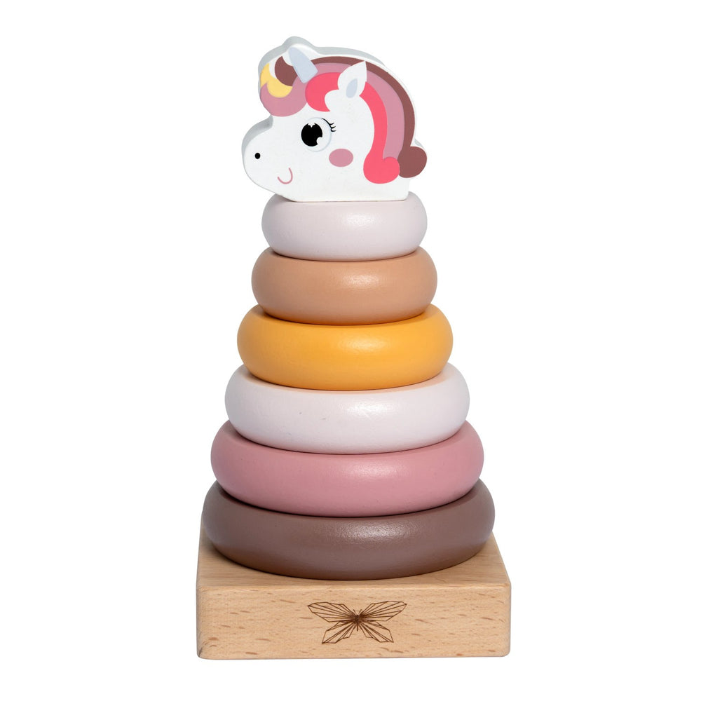 Upptäck glädjen och fantasiens kraft med vårt Unicorn Stack Tower från byASTRUP®; en perfekt leksak utformad för att stimulera unga barns utveckling samtidigt som de har roligt. Det här charmerande staplingstornet är gjort av hållbara, högkvalitativa trämaterial och är målat i mjuka nordiska färger som fängslar barnets uppmärksamhet och bidrar till en lugn lekstund.