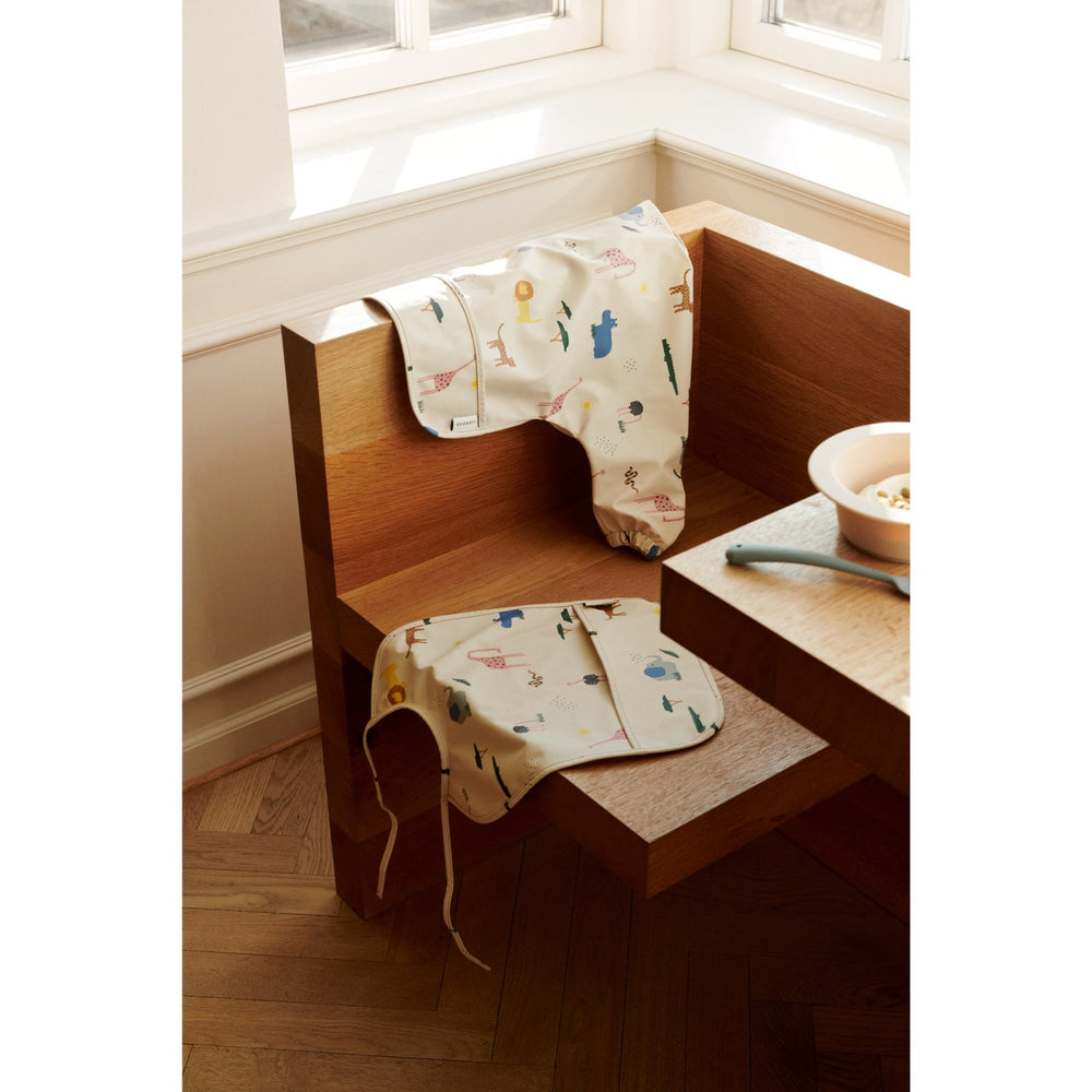 Håll måltiderna snygga och roliga med Liewood Merle Cape Bib! Den här lätta haklappen är utsmyckad med en charmig Safari Sandy Mix-design och har långa ärmar som ger full täckning för att hålla din lilla äventyrare orörd. Den är tillverkad av miljövänligt återvunnet material och är lätt att rengöra – skölj bara och torka av – så att du är redo för nästa omgång av matfrenesi på nolltid! Perfekt för de små matgästerna som behärskar konsten att äta.