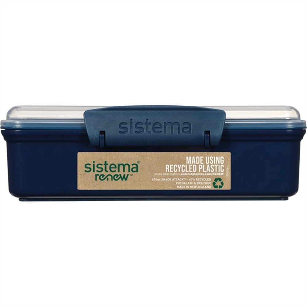 Gör din lunch- eller snacksstund mer praktisk och miljövänlig med Sistema Renew Snack Attack Lunch Box i 410 ml Blå. Köp den idag och njut av dina måltider med gott samvete."
