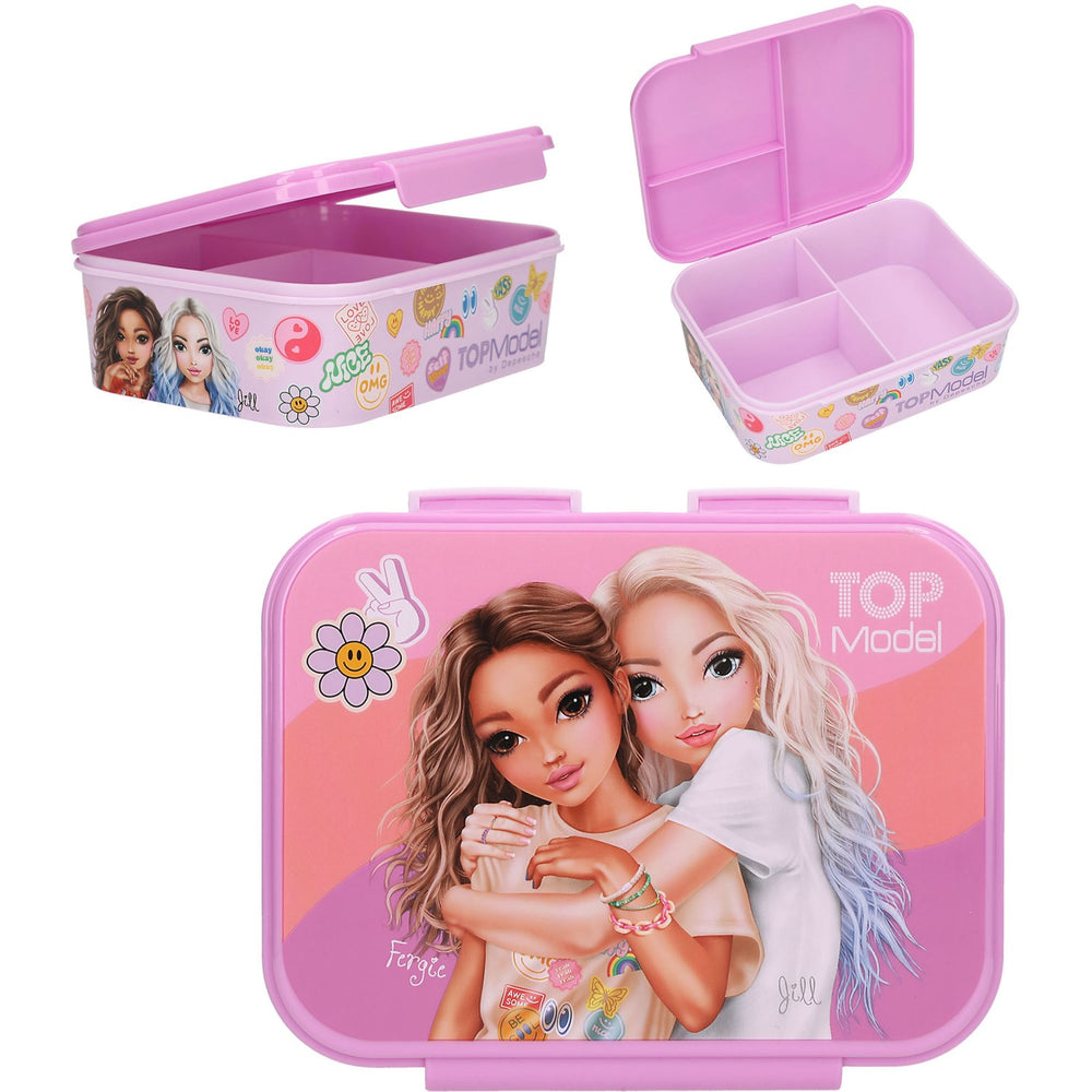 Upptäck den charmiga TOPModel Girl Power Lunchlådan, perfekt för varje litet barns matbehov. Denna lila-rosa lunchlåda är tryckt med ett härligt dubbelmodellmotiv fram och glada, färgglada klistermärkestryck på sidorna som stimulerar och underhåller. Den praktiska designen med tre separata fack under det gångjärnsförsedda locket gör det enkelt att organisera och förvara maten säkert. Lätt att använda och rengöra, vilket gör den till ett utmärkt val för daglig användning.