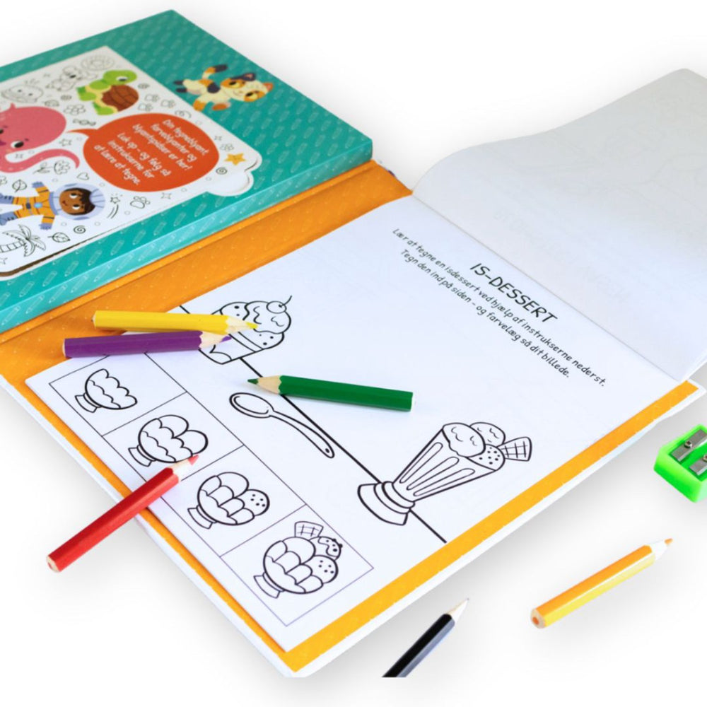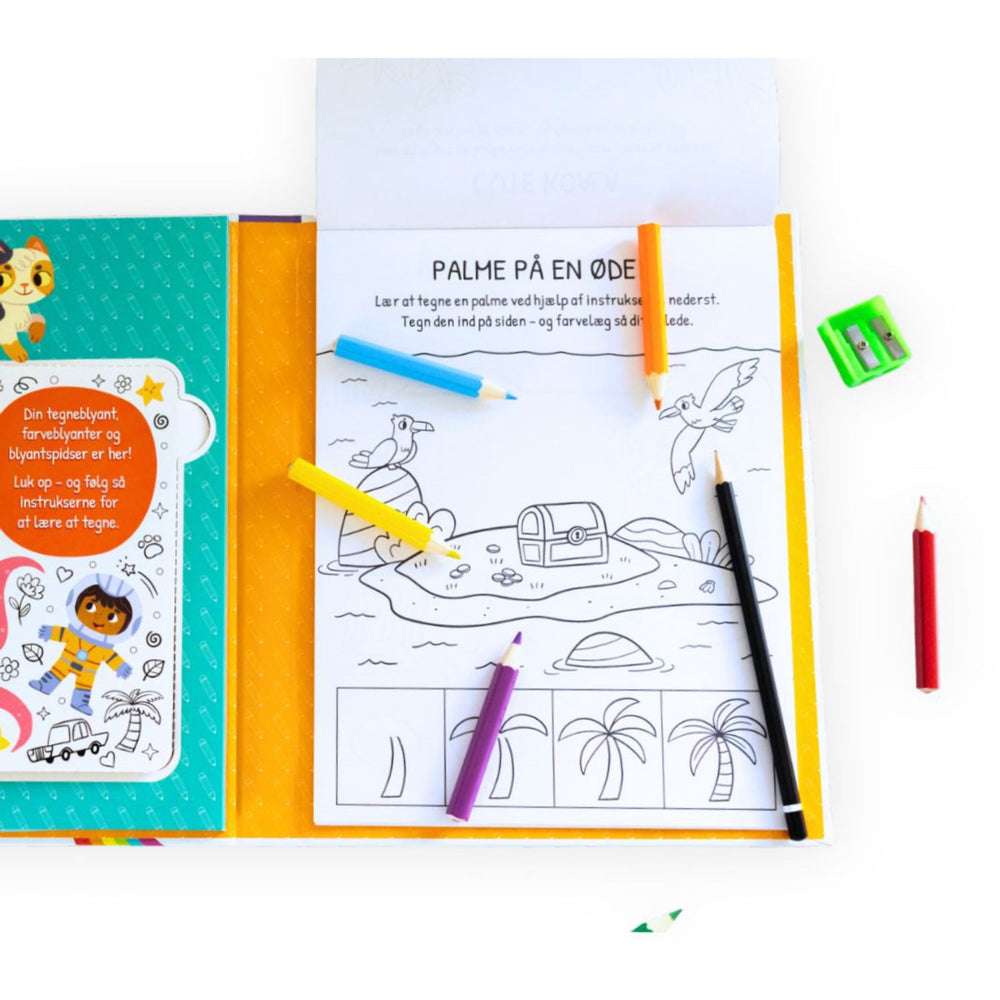 Boken kommer även med en uppsättning högkvalitativa rit- och målarverktyg, inklusive färgpennor och ritpennor samt en praktisk pennvässare. Dessa redskap är särskilt utformade för barnhänder vilket gör dem enkla att använda och främjar självständighet.