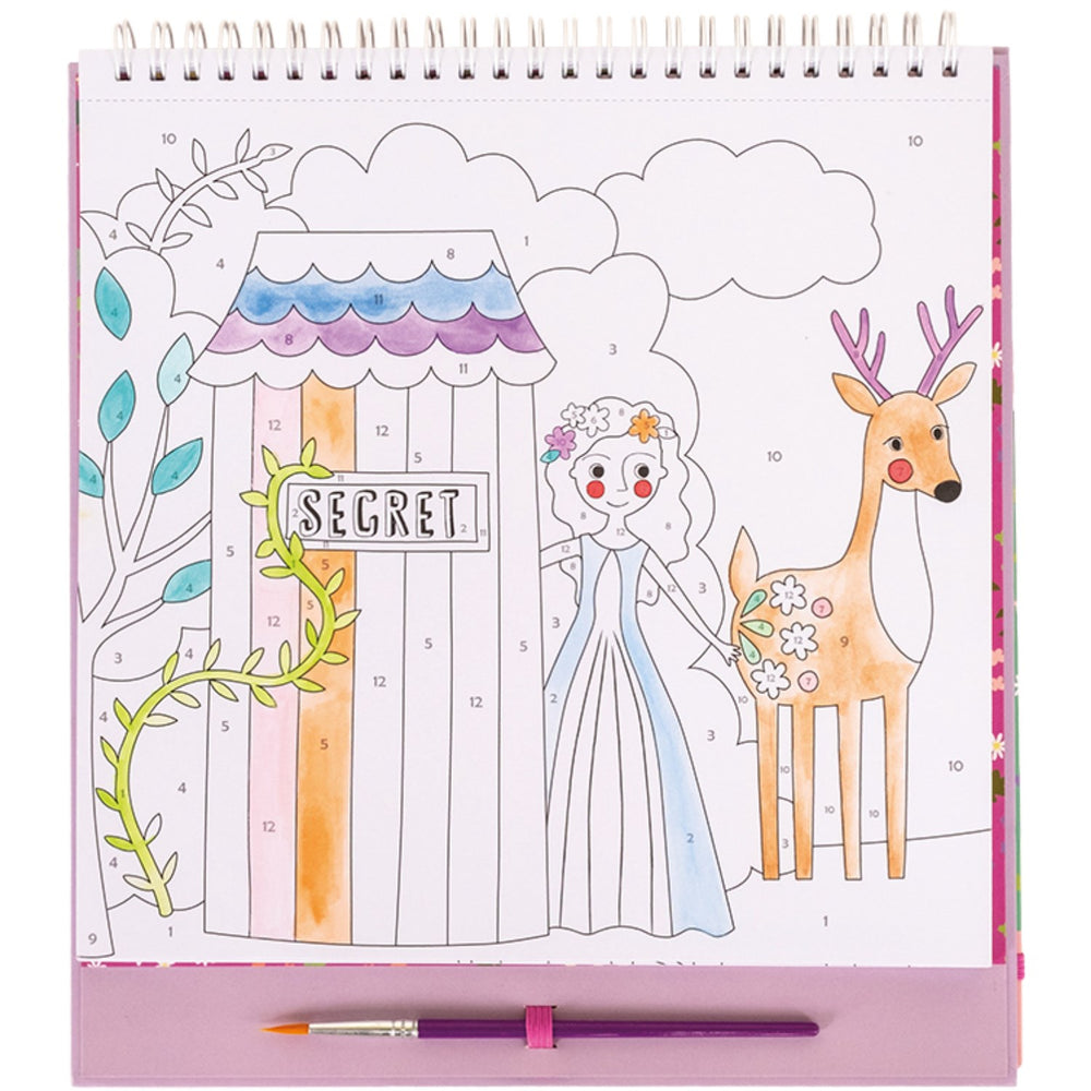 Vår Fairy Tale Paint by Numbers innehåller 10 bilder i ett spiralbundet block, med prinsessor, pumpavagnar, hästar, fåglar och mycket mer. Varje sida har en perforerad kant som gör det superenkelt att riva ut ditt konstverk och rama in eller hänga upp ditt mästerverk! Varje Paint by Numbers-set kommer också med 10 individuella färgpaletter och en pensel, plus en elastisk stängning för att hålla allt snyggt tillsammans.