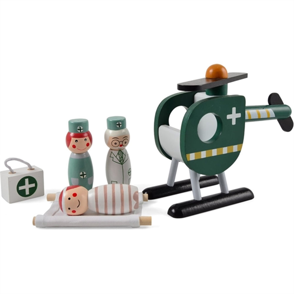 - Vacker trähelikopter med figurer och tillbehör