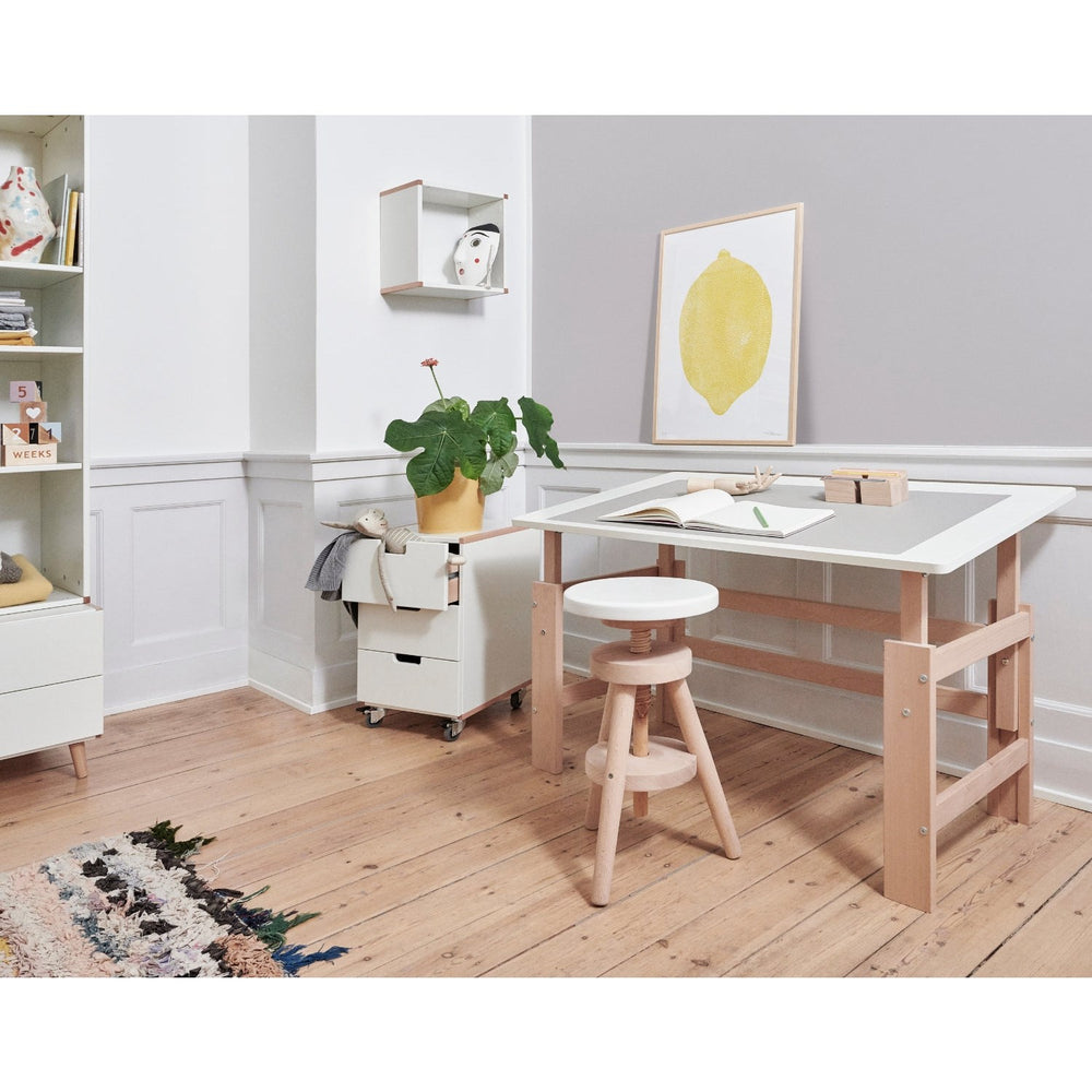 Tillverkad av robust bokträ och med ställbart MDF-säte, erbjuder stolen hållbarhet och anpassningsbarhet för att växa med ditt barn. Den justerbara höjden garanterar rätt ergonomi genom olika åldrar.