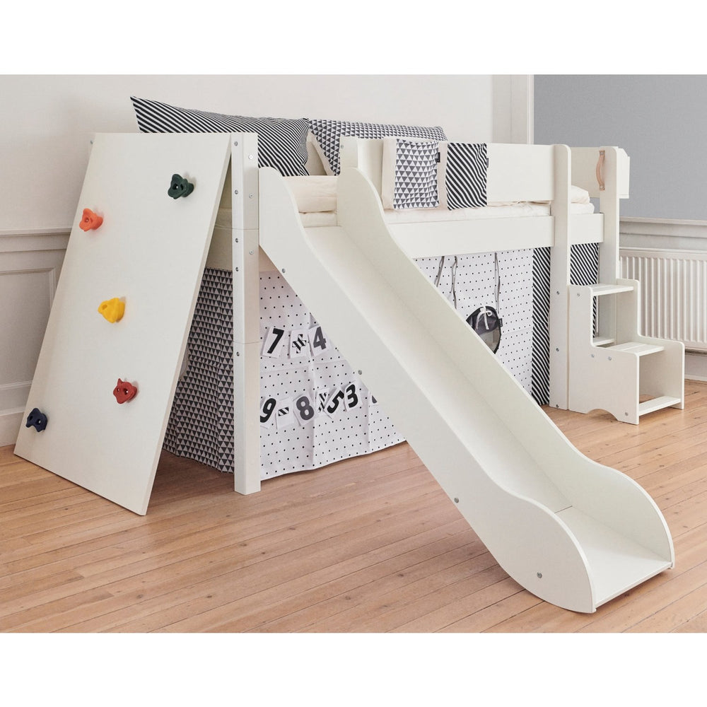 Upplev glädjen i Manis-h Snow White Loke Børneseng, en halvhög enkelsäng designad för kreativa och aktiva barn. Med sin inbyggda rutschkana främjar denna säng daglig lek och utvecklar barnets motorik. Dess robusta konstruktion och skyddande räcken garanterar säkerhet, medan den eleganta designen i snövitt smälter in perfekt i varje barnrum. Loke-sängen är inte bara en plats för vilsam sömn utan också en stimulerande miljö där ditt barn kan leka, lära och växa.