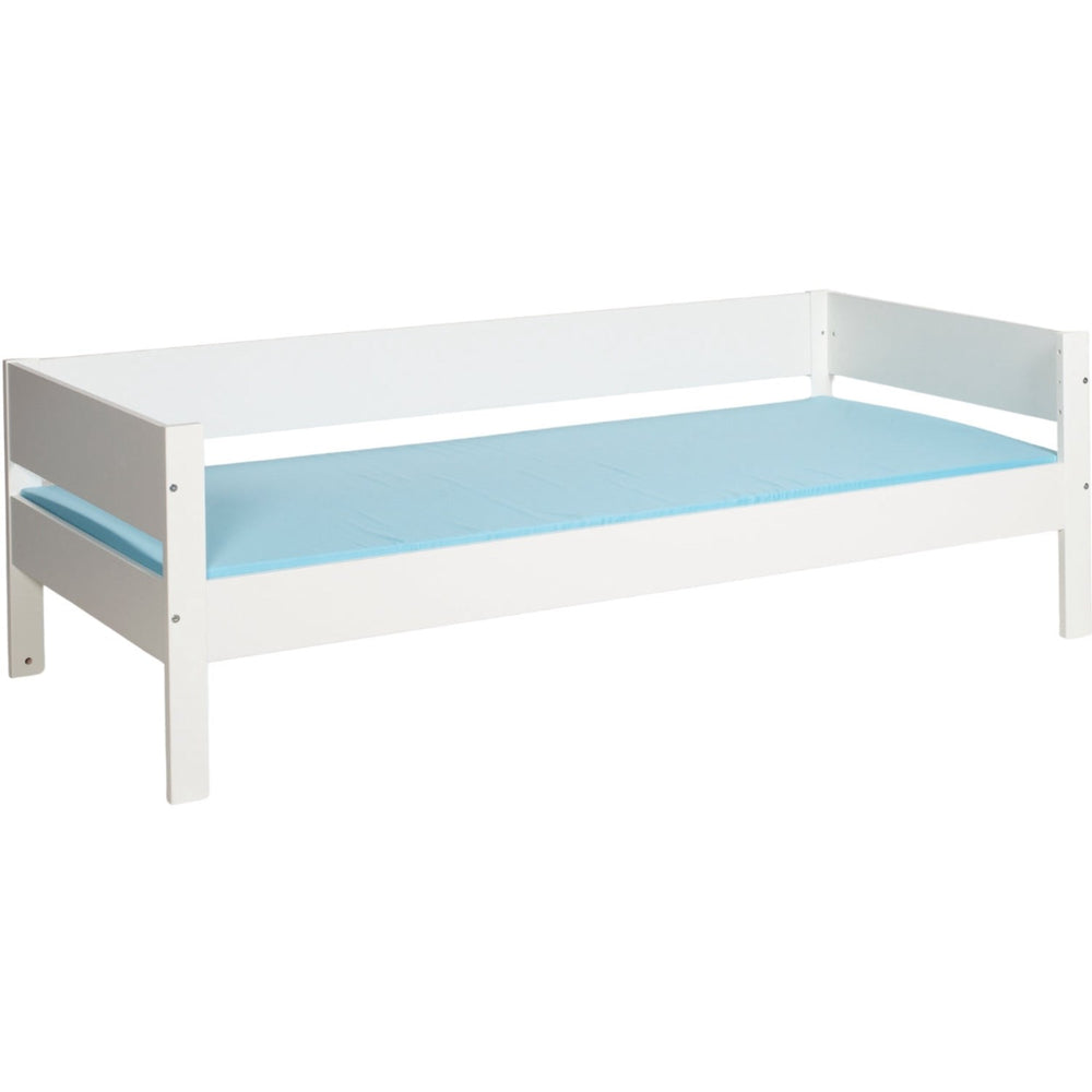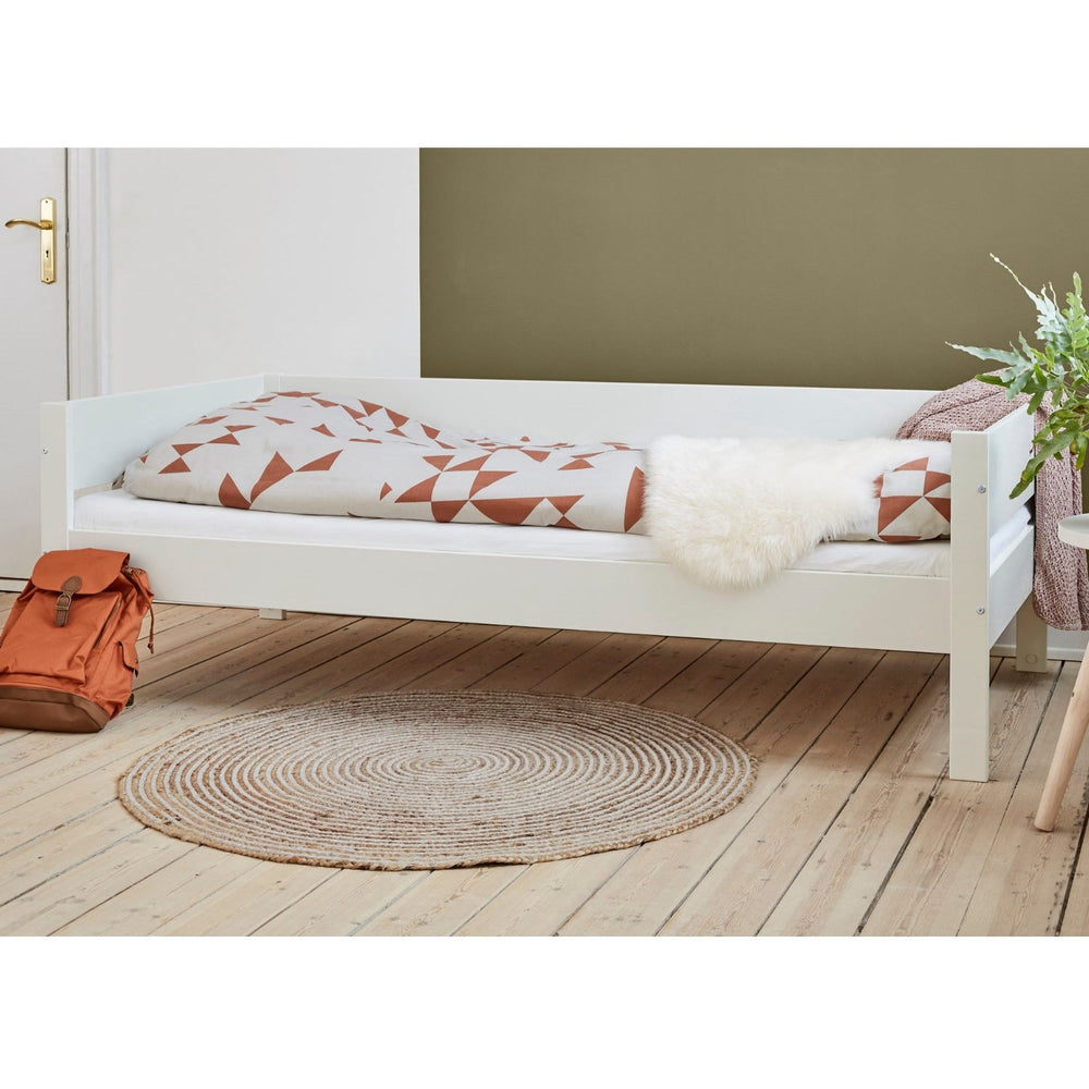 Upptäck Manis-h White Huxie Børneseng, en enkelsäng som kombinerar stil, säkerhet och funktionalitet perfekt för barnrummet. Denna säng, med sin rena afrodesign, erbjuder inte bara en estetiskt tilltalande look utan också en säker sovplats för ditt barn. Dess fullstorlek på 90x200 cm är idealisk för växande barn och kan anpassas till olika behov genom att enkelt transformeras till en halvhög säng eller en våningssäng.