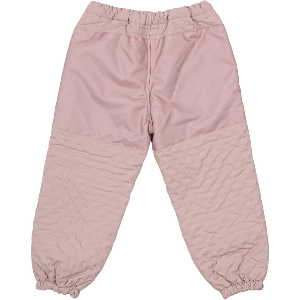 Upptäck värmen och stilen med Mikk-Line Adobe Rose Termisk + Frill Set! Perfekt för små äventyrare, detta set i enfärgad design är praktiskt lika mycket som det är charmigt med sina lekfulla volanger. Tillverkat med BIONIC-FINISH® ECO, ett miljövänligt och PFAS/fluoridfritt material, garanterar det hög isoleringsförmåga samtidigt som det står emot vatten - även om sömmarna inte är vattentäta. Med sin robusta textur och förmåga att stå emot vind är setet idealiskt för utelekar under de kyligare månaderna.