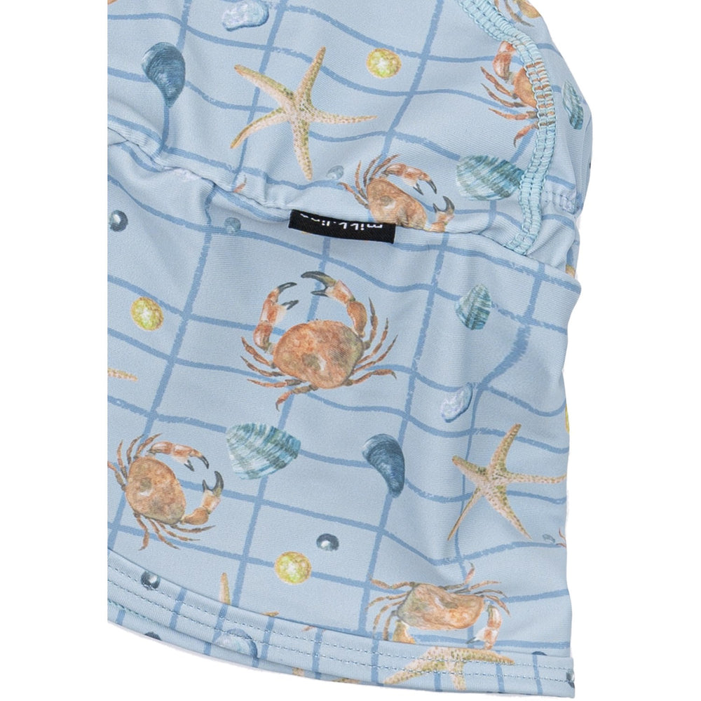 Dyk in i sommarnöjen på ett säkert sätt med Mikk-Line Faded Denim Swim Hat UV AOP. Den här hatten är expertdesignad för att skydda ditt barn från solen och har ett genomtänkt genomarbetat all-over-tryck med en lång halskant och en kortare frontskärm för att skydda ansiktet samtidigt som den ger gott om skugga för ögonen. Dessutom har den knytband för säker placering, vilket säkerställer att den håller sig tätt medan de plaskar och leker. Den här snabbtorkande, töjbara badmössan är tillverkad av 82 % GRS-certifierad återvunnen polyester och 18 % elastan och är också OEKO-TEX® Standard 100-certifierad, vilket bekräftar att den är fri från skadliga ämnen. Den här badmössan är perfekt ihopkopplad med matchande Mikk-Line badkläder och är ett måste för alla stranddagar eller poolbesök. Säkerställ lång livslängd genom att helt enkelt skölja i rent vatten efter exponering för klor eller saltvatten.