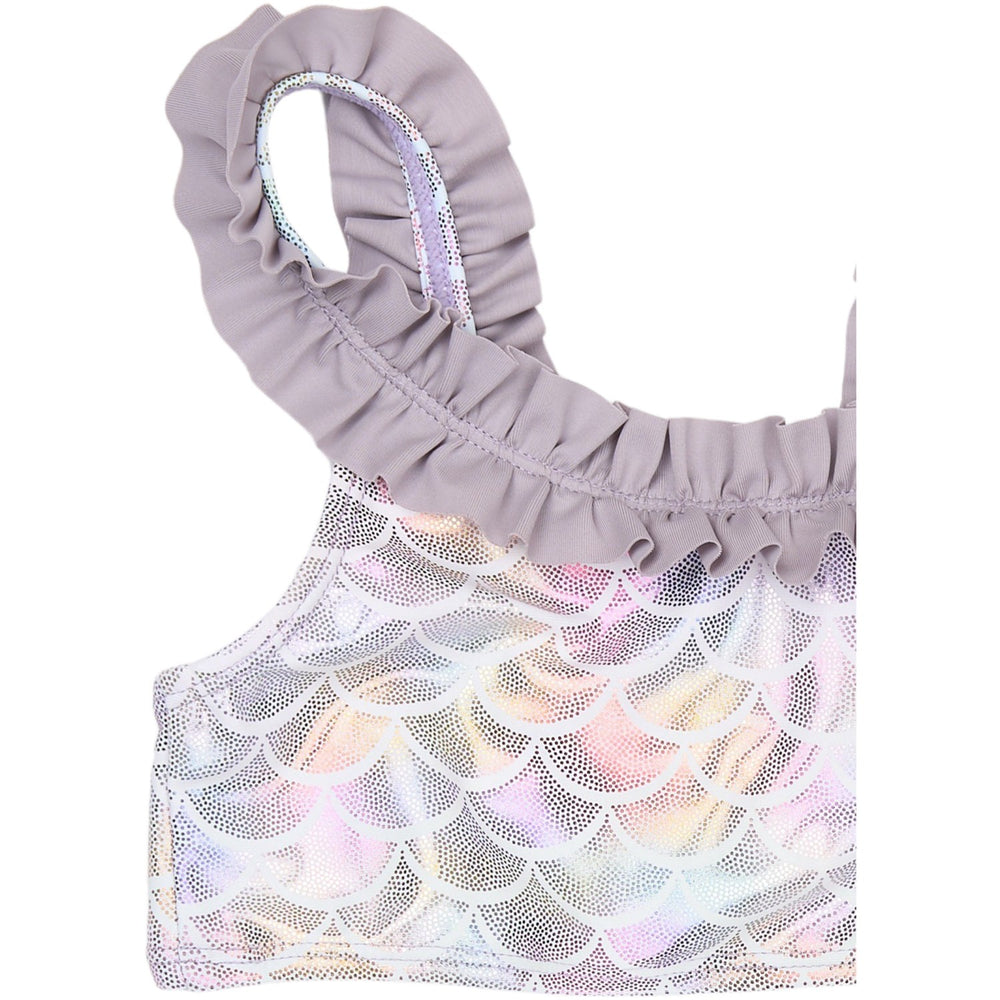 Designen har charmiga volangband och är skräddarsydd för en säker och bekväm passform tack vare den töjbara tygsammansättningen av 83 % återvunnen polyester och 17 % elastan. Den är också snabbtorkande, så att ditt barn håller sig bekvämt både i och utanför vattnet. Den är certifierad enligt OEKO-TEX® Standard 100 och du kan vara säker på dess säkerhet och kvalitet.