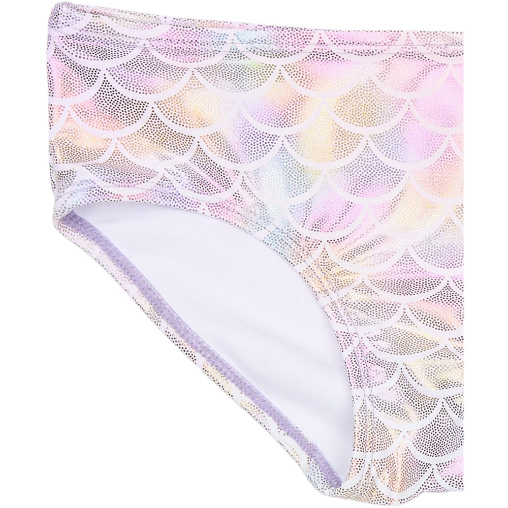 Dyk in i sommarnöjen med den förtrollande Mikk-Line Lavender Aura Swim Bikini. Det här härliga plagget är designat med hållbarhet i åtanke och är tillverkat av 83 % GRS-certifierad återvunnen polyester, vilket garanterar ett miljövänligt val. Utsmyckad med ett nyckfullt heltäckande tryck av blommor och sjöjungfruskinn, erbjuder den en touch av magi till ditt barns badklädessamling.