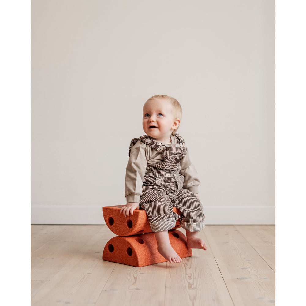 Upptäck den mångsidiga barnpallen i sköna färger av Burnt Orange och Dusty Green, perfekt för både lek och praktisk användning i barnets vardag. Denna tvåfärgade pall ägnar sig åt att förbättra motoriska färdigheter hos små barn från ett till sex år, tack vare dess innovativa design som tillåter olika lekmöjligheter. Pallen är tillverkad av hållbart EPP-skum som är både lätt och robust, vilket garanterar säkerhet och komfort. Eftersom den är låg i vikt och enkel att plocka isär, är den enkel att flytta och förvara, vilket gör den till en idealisk följeslagare i olika rum och situationer. Använd den som en sittplats vid ett lågt bord, i hallen för påklädning, eller låt den tjäna som en kärna i barnets motoriska utveckling. Barnet kan använda pallen för att förbättra sina balans- och motorikförmågor genom roliga aktiviteter såsom rullande lekar, balansövningar eller som en del av en hinderbana. Denna flexibla och pedagogiska produkt uppmuntrar till aktiva lekar som bidrar till barnets fysiska och kognitiva utveckling samtidigt som den stimulerar fantasin och ger glädje i dagliga aktiviteter.