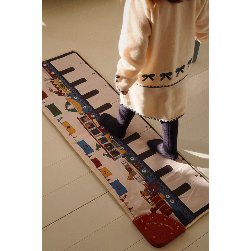 Upptäck glädjen och den musikaliska talangen hos ditt barn med Konges Sløjd Multi Floor Piano, den perfekta leksaken för små musiker i vardande. Detta unika musikaliska "filt" läggs enkelt på golvet och ger barnen möjlighet att utforska klassiska pianoljud genom att trampa på eller trycka på dess färgglada knappar. Med varje tryck följer en värld av ljud - från pianotoner till djurmelodier. Konges Sløjd Multi Floor Piano är både lärorikt och underhållande. Det innehåller interaktionsinlärningsspel som lär ut djurnamn och ljud, vilket bidrar till barnets kognitiva utveckling på ett roligt och engagerande sätt. En inspelningsknapp tillåter också barnen att spara och återuppspela sina egna musikaliska skapelser, vilket stärker deras minne och musikaliska förståelse. Tillverkat av robust och barnsäkert material, 100% polyester och 100% ABS, garanterar detta instrument säker användning. Det är anpassat för barn från tre år och uppåt, med tydliga varningar för att säkerställa en trygg lekstund bort från risken för kvävning eller hörselskador. Lätt att förvara och portabel, kan detta piano enkelt rullas ihop och tas med överallt, vilket ger musikaliska upplevelser både hemma och på resan. Genom att välja Konges Sløjd Multi Floor Piano investerar du i ditt barns kreativa utveckling och erbjuder en källa till oändlig underhållning och inlärning.