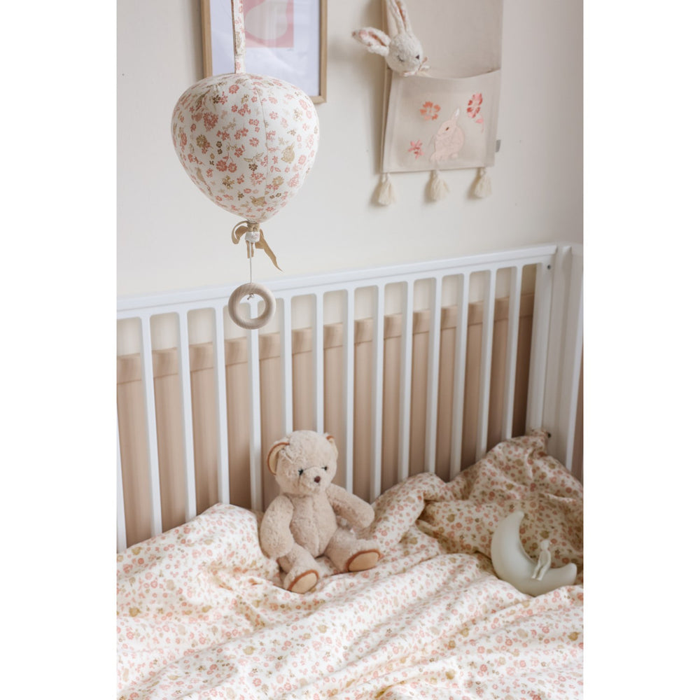 Förvandla barnkammaren till en magisk plats med Cam Cam Copenhagen Augusta Musikpaus Balloon, en förtjusande musikmobil formad som en lekfull ballong. Med en söt bomullstejpsrosett och gjord i lugnande färger, bjuder denna handtillverkade mobil in till härliga drömmar och avkoppling för de minsta.