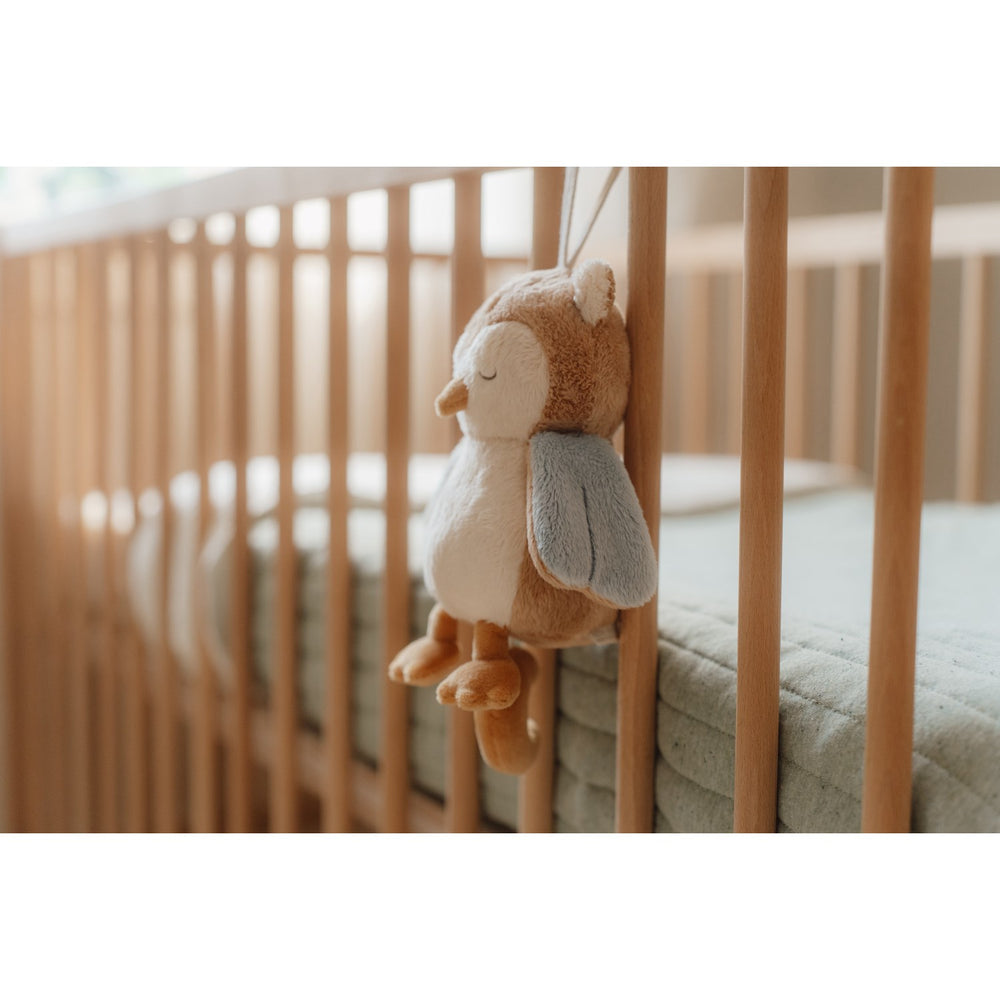 Upptäck den charmiga Little Dutch Forest Friends Blue Spilledåse Ugle, en musikmobil som lovar att förgylla ditt barns sänggång. Denna musikmobil är inte bara en vacker inredningsdetalj, den är också designad för att skapa en trygg och lugn atmosfär vid läggdags. Med ett enkelt drag i snöret, prytt med en liten måne, börjar en mjuk vaggvisa spela, vilket hjälper ditt barn att lugnt drömma sig bort till sömns.