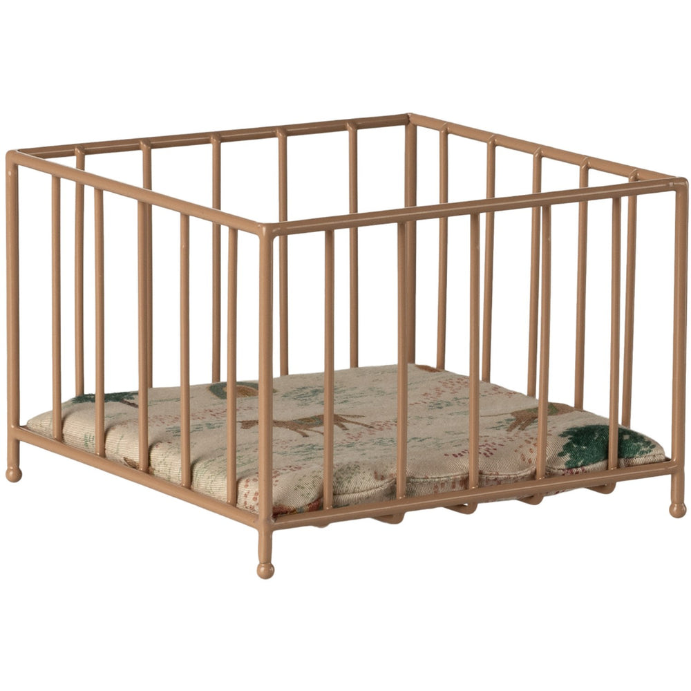 Upptäck glädjen med Maileg Kravlegård, Mikro i en bedårande mörkrosa nyans, som erbjuder en trygg och inspirerande miljö för de minsta. Perfekt anpassad för barnens lek med kaniner och harar i storlek Mikro, kombinerar denna lekhage både säkerhet och stil. Tillverkad av robust metall och utrustad med en mjuk madrass, med unikt Maileg-tyg, garanterar den både komfort och säkerhet under lekstunderna.