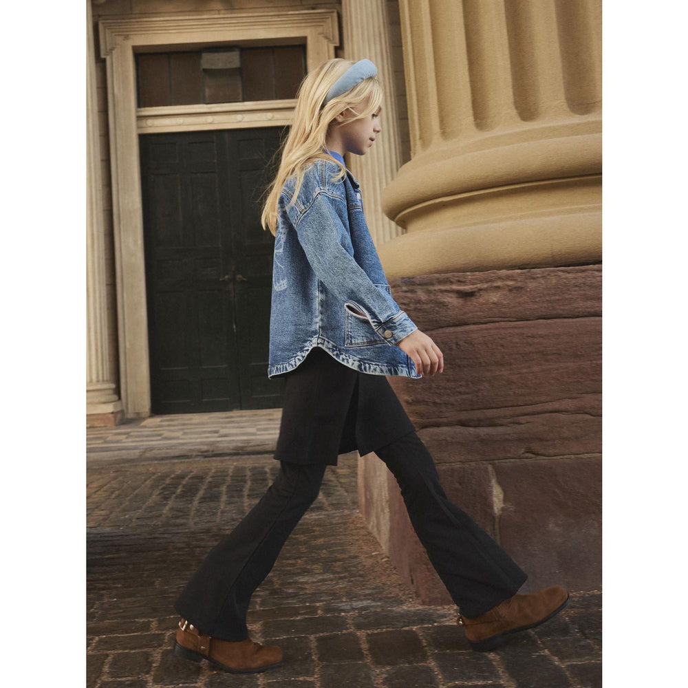 Byxornas medelhöga midja och justerbara insida säkerställer en perfekt passform medan den utsvängda designen tillför en trendig touch till byxornas utseende. Med sin stövelskärning är dessa byxor inte bara praktiska utan också idealiska för olika skotyp. Tack vare det lättanvända materialet är byxorna enkla att sköta, vilket gör dem till ett praktiskt val för aktiva barn.