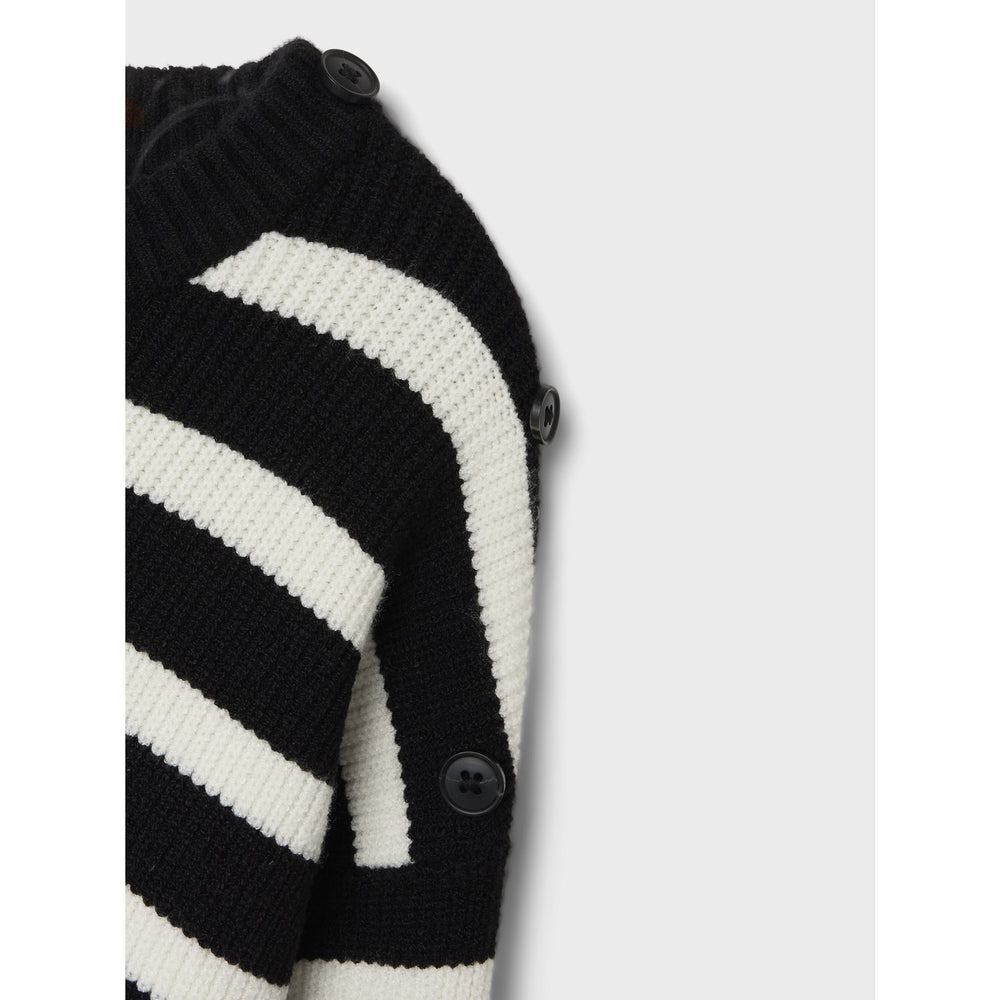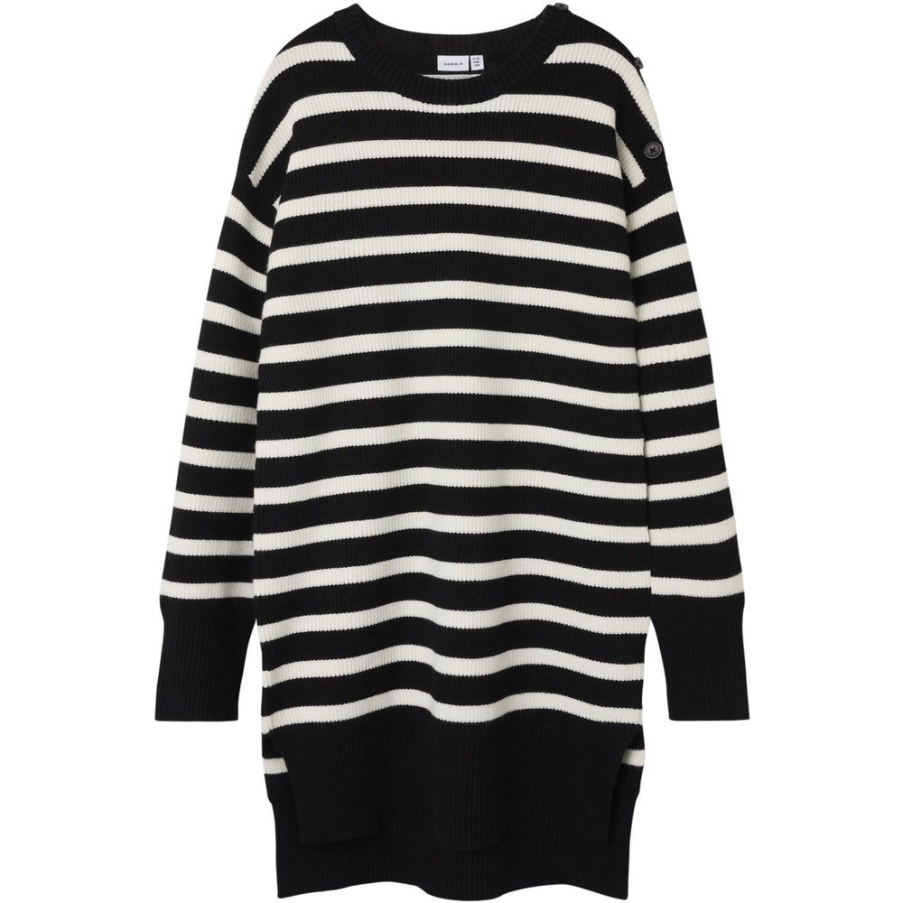 Upptäck vår mysiga *Name It Black Ratcha Tunic* – en stickad tröja som lovar både värme och stil under kyligare dagar. Denna tröja är tillverkad i flat knit-teknik, vilket ger ett slätt och tidlöst utseende som passar perfekt för alla tillfällen. Den klassiska runda halsen och långa ärmar med ribbade manschetter kombineras för att skapa en behaglig passform som inte begränsar barnets rörlighet. Praktiska detaljer som knappar och sidoslitsar tillför både funktion och en nypa charm. Oavsett om det är till skolan eller en ledig helg hemma, kommer denna tröja att hålla ditt barn varmt och bekvämt utan att kompromissa med stilen.