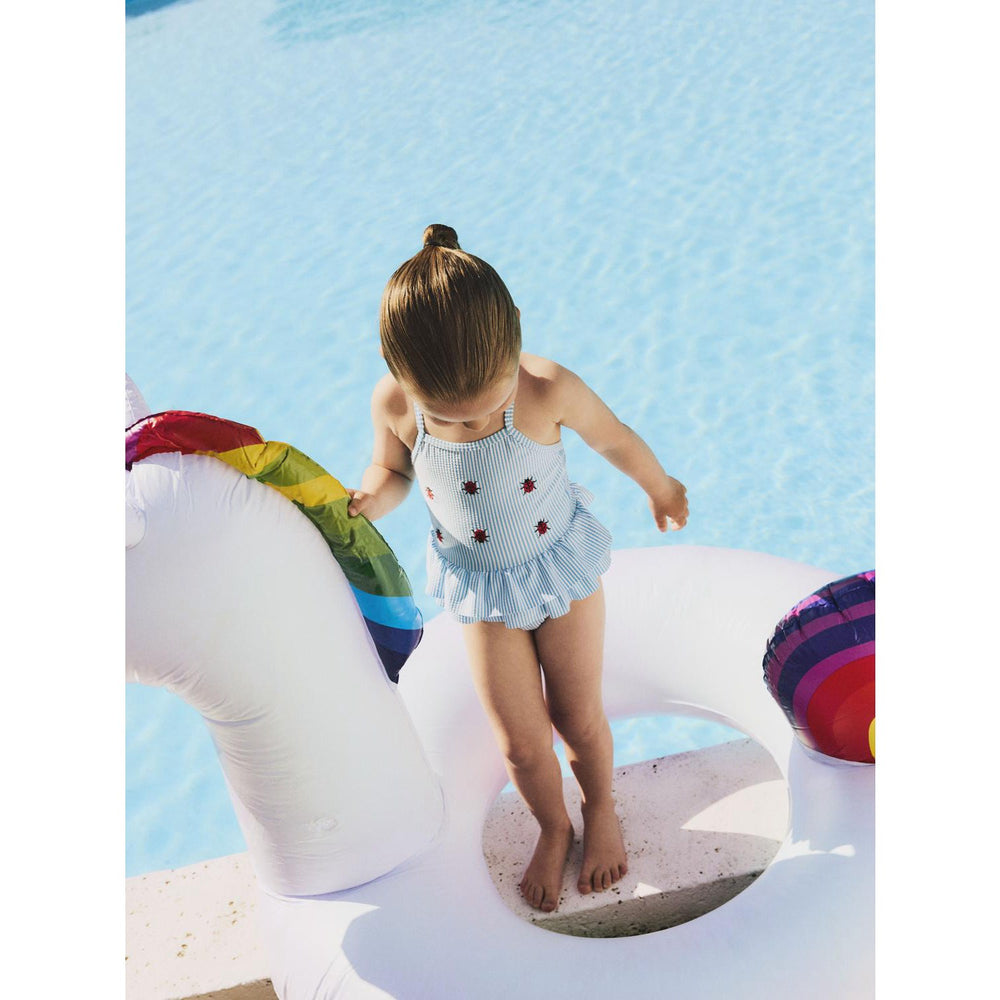 Upptäck vår charmiga "Name It Bonnie Blue Zammer" baddräkt – perfekt för lekfulla dagar vid poolen eller stranden! Tillverkad i garnfärgat tyg som inte bara behåller sin livliga färg bra utan också ser lika bra ut på både fram- och baksida. Denna baddräkt är designad med korsande ryggremmar som säkerställar en säker passform medan din lilla utforskare njuter av sommaraktiviteter. Specifikationerna inkluderar ett polyestermeshfoder som erbjuder ett ogenomskinligt utseende och extra detaljer såsom utsökt broderi och dekorativa krusiduller. Den lekfulla mönstringen är upprepad över hela plaggets yta och bidrar till den unika stilen. Denna baddräkt är inte bara stilfull men också praktisk och bekväm, perfekt anpassad för barns aktiviteter och lek. Hållbarheten och enkla skötseln gör den till ett självklart val för sommarens alla äventyr. Låt ditt barn uppleva vattenlek med komfort och stil!