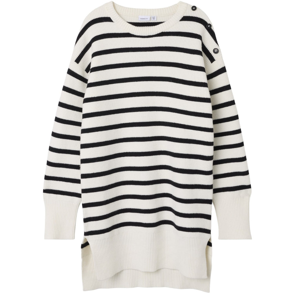 Upplev ultimat komfort för ditt barn med vår Name It Cloud Dancer Ratcha Tunic. Denna stickade tröja är perfekt för att hålla de små varma och mysiga under kyliga nätter och kalla dagar. Tröjan är tillverkad i flat knit, en slätstickad design som ger en ren och tidlös look. Med långa ärmars ribbade manschetter och klassisk rund hals, erbjuder denna tröja en normal passform som är både bekväm och stilrik. Dessutom är tröjan försedd med snygga knappdetaljer och sidoslitsar som inte bara adderar till dess estetik men också ökar rörligheten. En pålitlig och hållbar vän i garderoben för aktivt lekande och avslappnade dagar.
