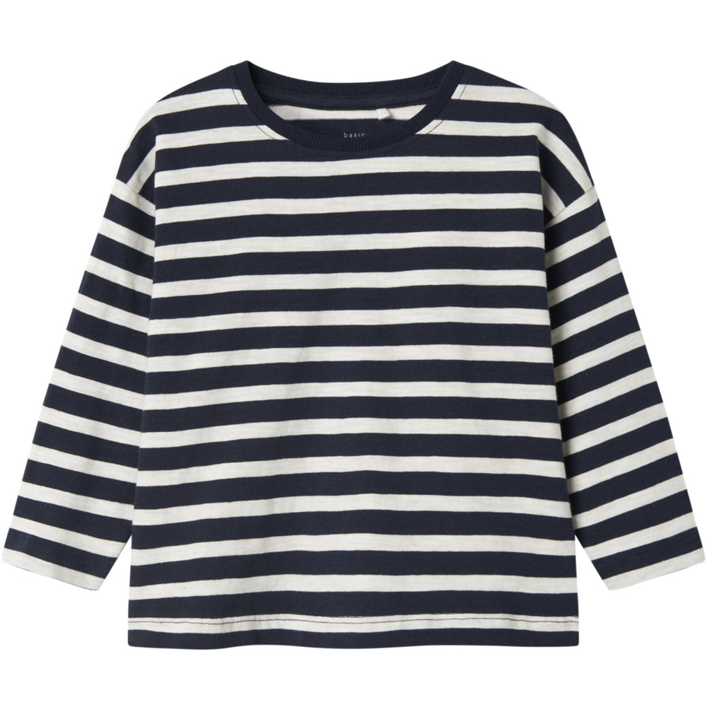 Uppdatera din lilla äventyrares garderob med "Name It Dark Sapphire Vaksel Blus", en mångsidig och stilfull topp som passar lika bra i skolan som på kalas. Den här blusen är tillverkad i jersey, ett material känt för sin lätthet och elasticitet, vilket ger barnet maximal rörlighet och komfort under dagens alla aktiviteter. Med sin mjuka yta och insida känns blusen oerhört behaglig mot den känsliga barnhuden. Med sin mörkblå färg och lekfulla mönster av upprepade tryck är denna topp inte bara skön att bära, utan också visuellt tilltalande. Den avslappnade passformen ser till att kläderna inte stramar eller hindrar, och de långa ärmarna ger extra skydd mot väder och vind. Blusens runda hals ger den en klassisk touch som lätt kan matchas med andra plagg. Perfekt att bära både till vardags eller vid festligare tillfällen, denna blus från Name It ger en kombination av stil, komfort och funktionalitet som är idealisk för barnets aktiva liv. Lätt att sköta om, håller sig toppen fräsch även efter flera tvättar.