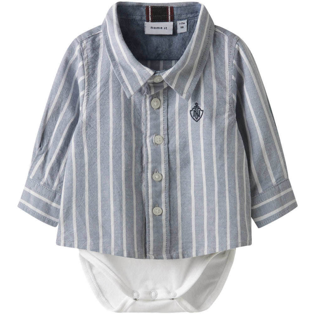 Låt ditt barn uppleva kombinationen av stil och komfort med NAME IT BABYs Nbmrekid Shirtbody i designen Flint Stone Thin Stripe - Bright White. Tillverkad i oxford, ett tvåfärgat vävt tyg med strukturerad yta, erbjuder denna skjortbody inte bara en klassisk look utan också en behaglig känsla. Klädd i mjuka linjer med långa ärmar och skjortkrage, samt praktiska tryckknappar för enkel på- och avklädning, är detta plagg både snyggt och funktionellt. Med sin normala passform och rena, ljusa färgsättning med tunna ränder är den perfekt för allt från vardagslek till festligare tillfällen. Våra plagg är designade för att möta de senaste trenderna samtidigt som de uppfyller höga standarder för både komfort och användbarhet.