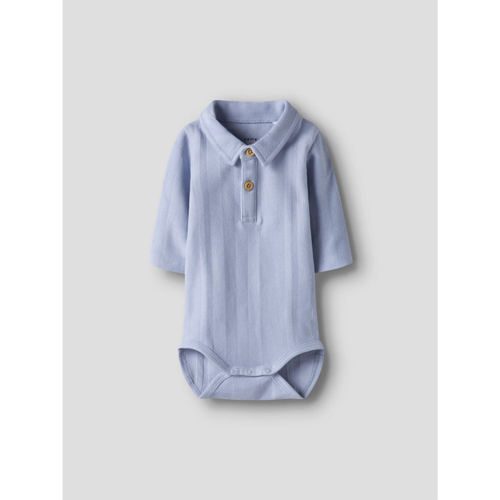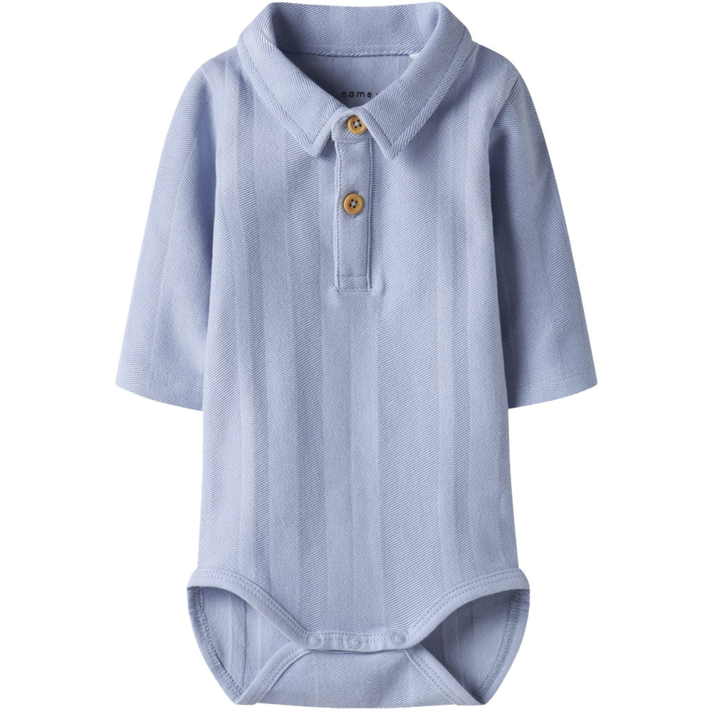 Uppdatera din lilla äventyrares klädarsenal med vår Name It Kentucky Blue Nbmrobo Polo Body. Denna charmiga bodysuit är tillverkad för att hålla hög komfort och vara praktisk genom alla årstider. Tillverkad i Jacquard med ett vävda mönster, erbjuder den en estetiskt tilltalande look och en känsla av elegans. Det pikéhalsade snittet tillsammans med långa ärmar och praktiska knappar fram underlättar påklädningen och ger en avslappnad stil. Dessutom är färgen och mönstret i Kentucky Blue både tidlös och lekfull, perfekt anpassad för ditt barns dagliga äventyr. Tänk på att bodysuiten ska förvaras åtskilt från eld för att undvika faror. Det här är en produkt som kombinerar stil, komfort och funktion på bästa möjliga sätt.