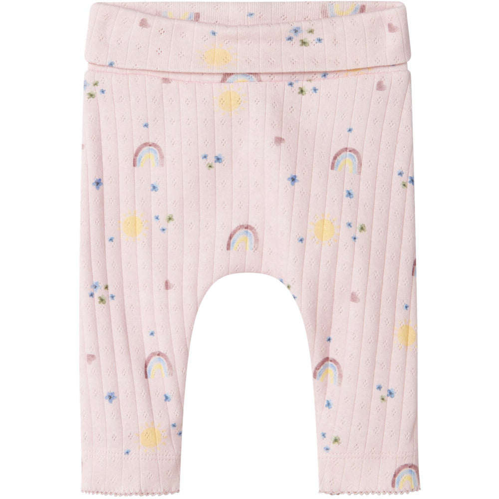 Lys upp ditt barns garderob med Name It Light Lilac Fabiane Byxor, perfekta för lek och avslappning. Dessa byxor är tillverkade i en behaglig pointelle stickning med en öppen väv och ett attraktivt geometriskt mönster, vilket ger en sofistikerad och söt stil. Byxorna kommer i en lätt lila nyans som adderar en färgklick till varje outfit och passar utmärkt för både pojkar och flickor.