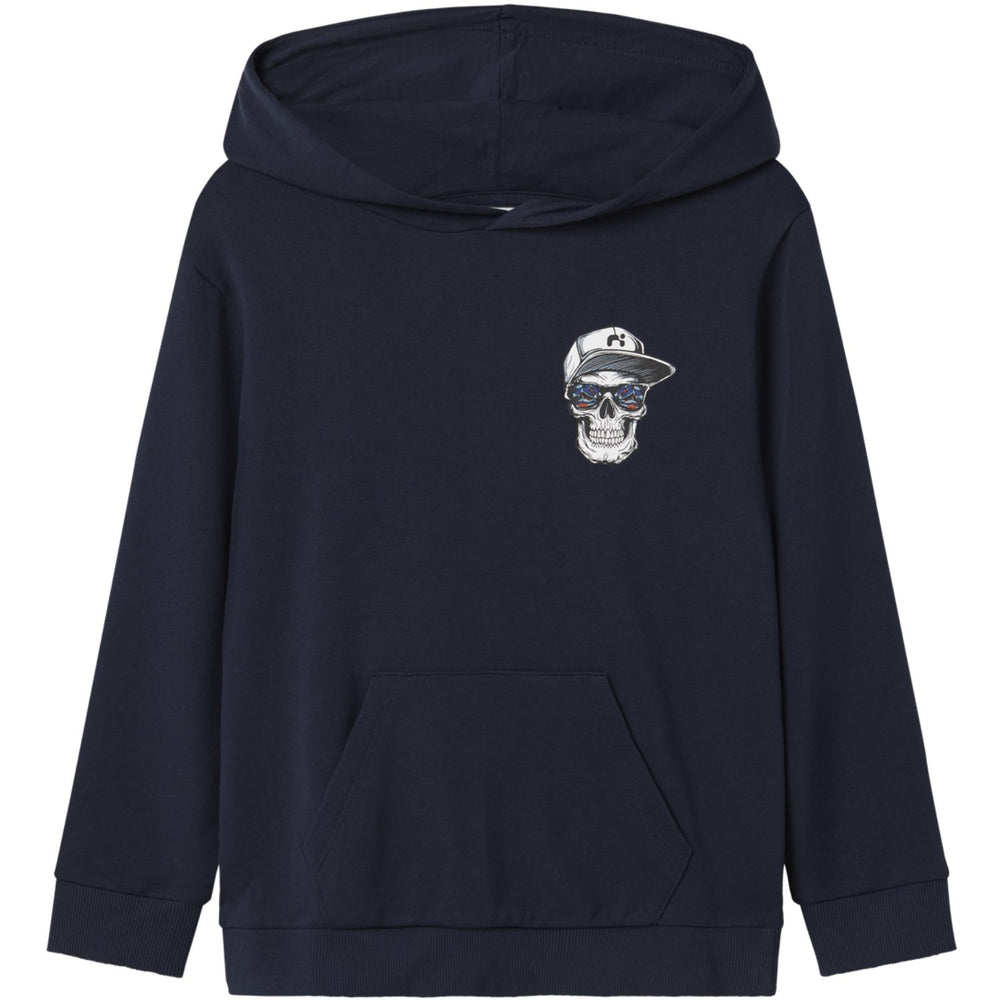 Förnya din lilla äventyrarens garderob med denna stilrena och bekväma sweatshirt från Name It. Tillverkad i högkvalitativt oborstat svettmaterial, garanterar denna marinblå tröja en mjuk känsla både inuti och på ytan, vilket gör den idealisk för både lek och avkoppling. Med sitt tidlösa design med en praktisk huvtröja, långa ärmar och ribbade manschetter, kombinerar den här tröjan funktionalitet med trendig stil.