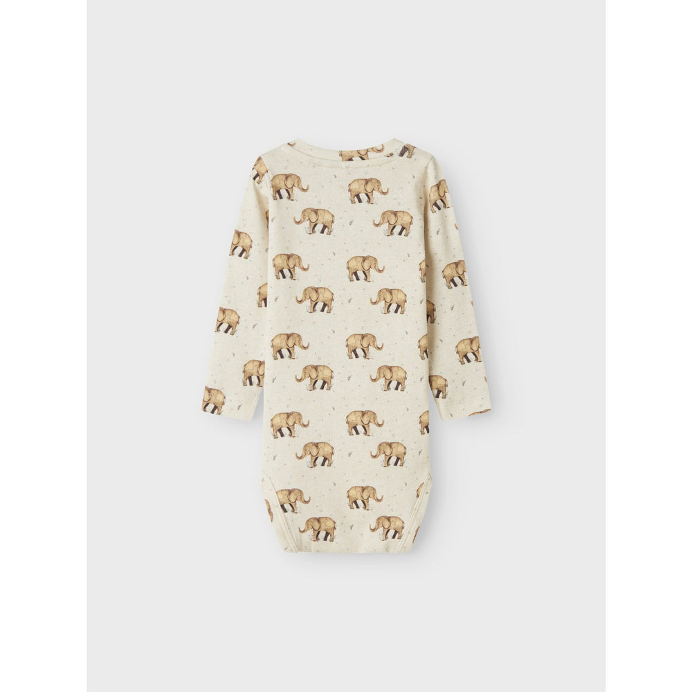 Designad med en klassisk rund hals och långa ärmar, erbjuder denna bodysuit en tidlös look som är lika praktisk som den är söt. Den enhetliga tryckknappsstängningen vid grenen gör den enkel att ta på och av, vilket underlättar för både förälder och barn under ombyten. Det lekfulla mönstret som upprepas över hela plagget ger en rolig och attraktiv design, vilket gör varje outfit livlig och iögonfallande.