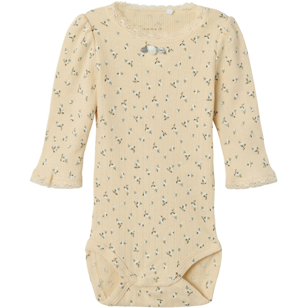 Uppdatera din lilla ängels garderob med vår ‘Name It Sun Kiss Hoise Body’, en bodysuit som kombinerar stil med komfort. Tillverkad i en skön ribbstickad design, är denna bodysuit utformad med ett iögonfallande vertikalt randigt mönster som tillför en tidlös charm. Med sin runda hals, långa ärmar och smarta tryckknappsfästningar både vid halsen och i grenen är den både praktisk och lätt att hantera vid på- och avklädnad. Dessutom är den dekorerad med en fin spetsdetalj för en extra touch av stil. Bodyn är tillverkad för att tåla frekvent användning och tvätt, och den upprepade mönstertrycket över hela ytan gör den visuellt tilltalande samtidigt som den undviker direkt kontakt med eld för ökad säkerhet. Perfekt för alla tillfällen, denna bodysuit lovar komfort och hållbarhet, vilket gör den till ett idealiskt val för ditt barns dagliga äventyr.