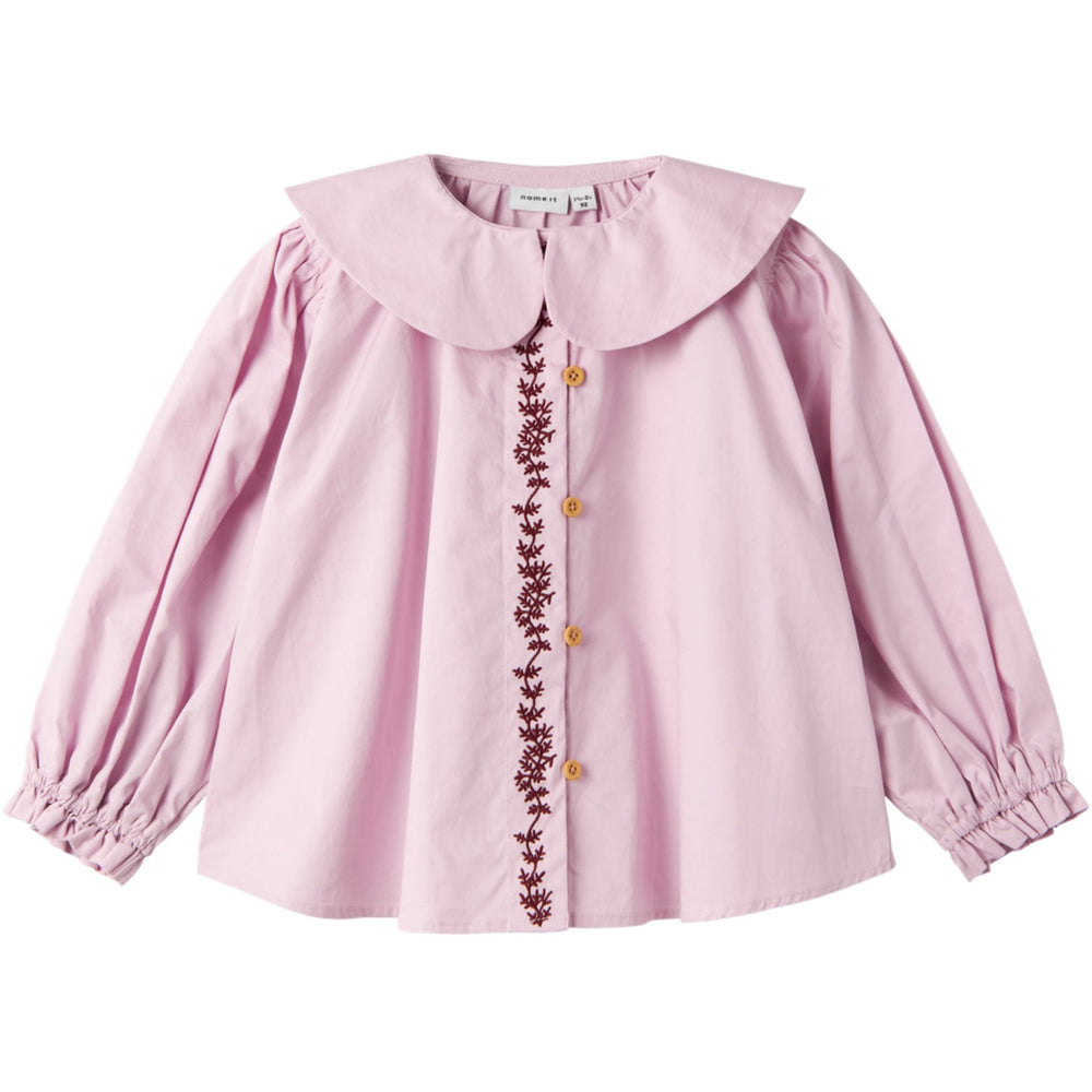 Upptäck Name It Winsome Orchid Tetalia Skjorta som ger ditt barns garderob en fräsch vårkänsla. Skjortan, i sitt vävda tyg med distinkt korsmönster och lätt texturerad yta, erbjuder en ren och klassisk look. Dess design inkluderar en skjortkrage, långa ärmar med elastiska manschetter och praktisk knappstängning. Den utsökta detaljen med broderi tillför en unik touch. Med sin normala passform och bekväma design är denna skjorta perfekt för allt från vardagligt skollek till festligare tillfällen. Njut av enkel skötsel med denna charmiga och funktionella barnskjorta.