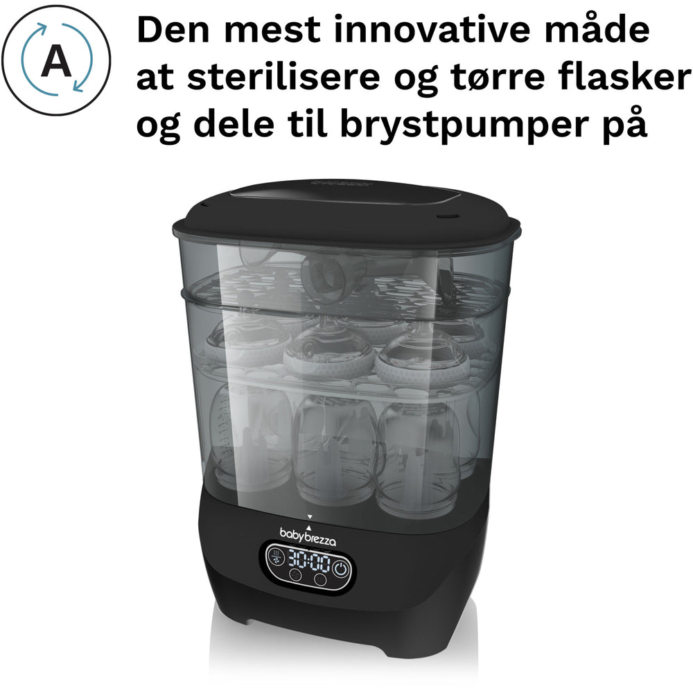 Upptäck Baby Brezza Black Sterilizer Dryer Advanced, en ovärderlig hjälp för alla föräldrar. Denna högkvalitativa sterilisator och torkare är både enkel att använda och säker, med certifieringar som understryker dess pålitlighet. Designad för optimal komfort och flexibilitet, rengör och förvarar nappflaskor och tillbehör effektivt samtidigt som den håller dem steriliserade och redo att användas. Den erbjuder också stimulerande funktioner för ditt barn, vilket gör den till en idealisk lösning för att underlätta vardagen.