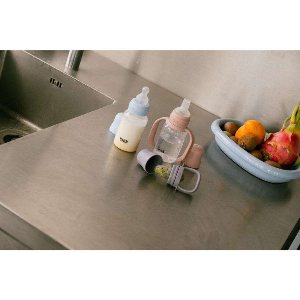 Upptäck vår Bibs Blush Baby Sippy Flaska, en idealspik i utvecklingen mot självständig matning. Flaskans pipnippel är specialanpassad för vattenintag och kombinerad med greppvänliga handtag för små händer erbjuder den en sömlös övergång från flaska till mugg. Tack vare den inbyggda anti-kolik ventilen minimeras risken för besvärliga gaser, och den frostade, hudliknande ytan säkerställer ett stadigt grepp och förebygger spill. Denna flaska är inte bara praktisk med sin läckagesäkra design, den är också allergivänlig och helt fri från BPA. Dessutom är den robust konstruerad för att tåla daglig användning, från de första vätskeförsöken till regelbundet drickande. Idealisk för små äventyrare från 6 månader och uppåt, och ett tryggt val för föräldrar som värdesätter säkerhet och kvalitet.
