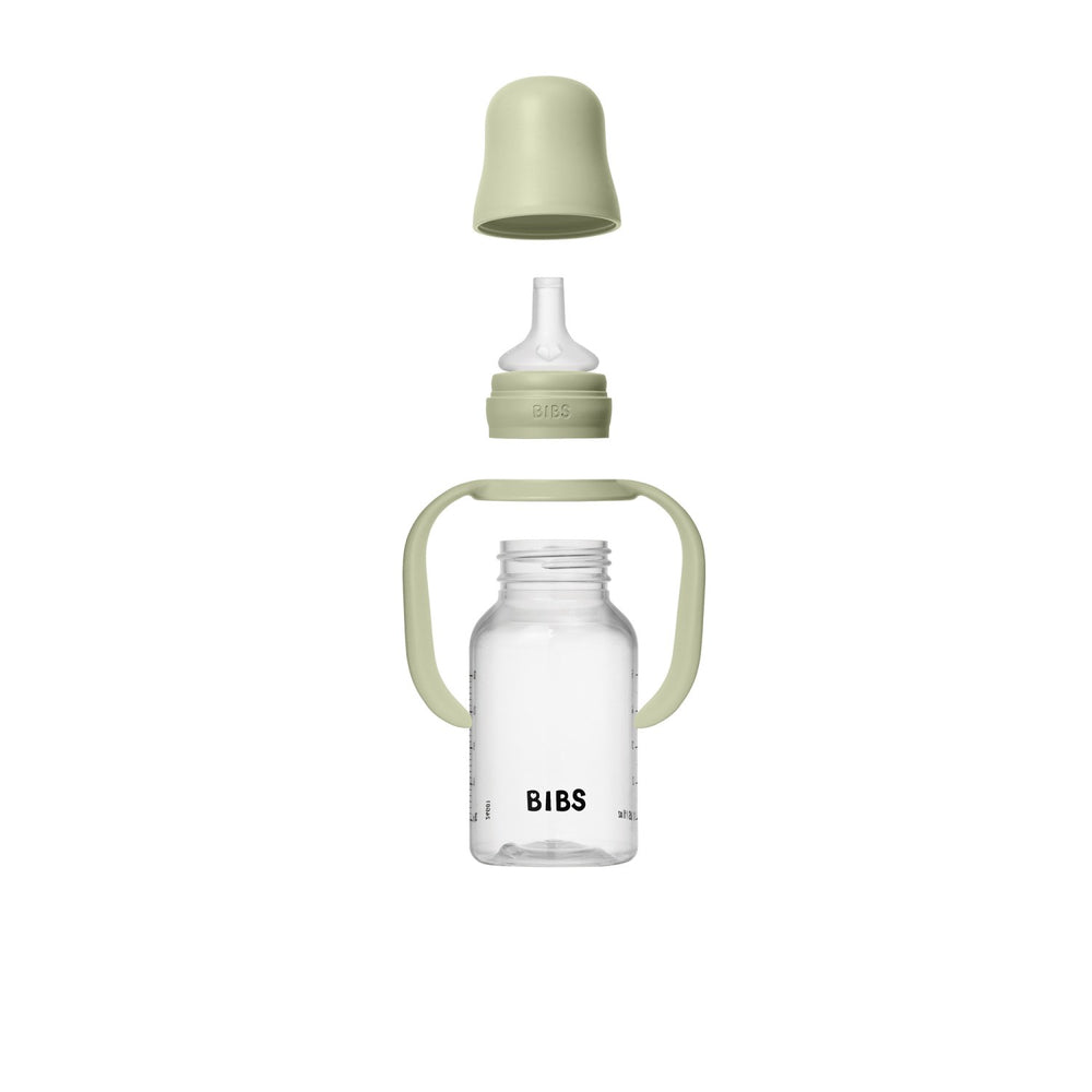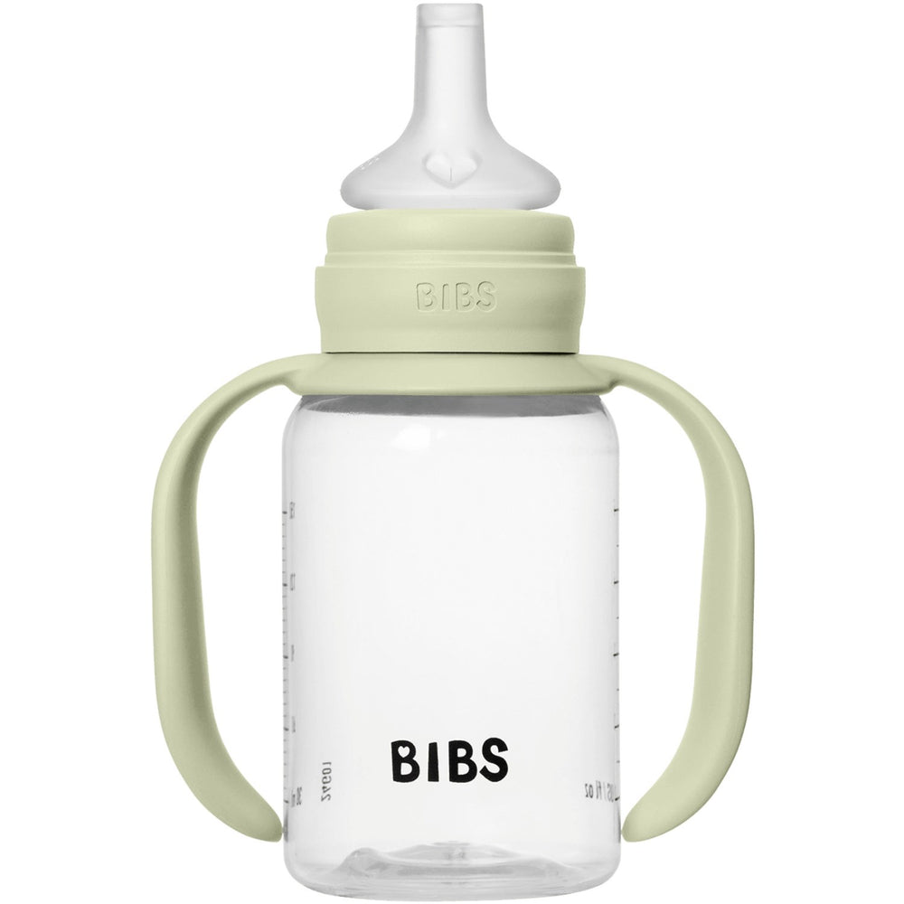 Uppmuntra ditt barns övergång till självständigt drickande med vår Bibs Sage Baby Sippy Flaska. Denna innovativa pipflaska är utformad för att förenkla barnets utveckling med sin mjuka, rundade silikonpip som stödjer långsam vätskeflöde. Den är perfekt för att minska spillet och underlätta drickandet. Med sina ergonomiskt designade handtag erbjuder den lilla händerna optimalt grepp, vilket säkerställer att din bebis kan hålla i sin flaska stabilt och självständigt. Föräldrars sinnesro stärks av de robusta säkerhetsfunktionerna – från anti-kolik-ventilen som effektivt reducerar gasbildning till den halkfria ytan som förebygger att flaskan glider ur munnen. Den är även frostad för att efterlikna en hudlik känsla, vilket är idealiskt för barn som lär sig rätt sugteknik. Vår flaska är enkel att rengöra, hållbar och tillverkad av allergivänliga material som är fria från BPA, vilket garanterar ett säkert användande varje gång. Dess universella utformning lämpar sig väl från sex månaders ålder och erbjuder användbarhet genom flera utvecklingsstadier. Den lekfulla designen, skapad i Danmark, stimulerar inte bara barnets sinnesintryck men gör även måltiderna roligare och mer engagerande. Låt ditt barn upptäcka glädjen och självständigheten av att dricka själv med denna pålitliga och multifunktionella sippy flaska.
