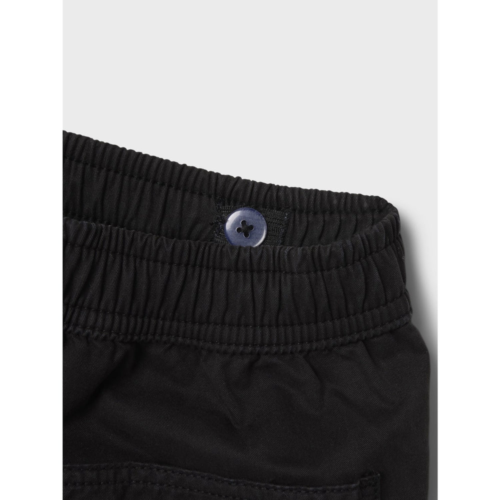 Dessa stilrena svarta byxor från Name It är både funktionella och snygga för barn som är i farten. Tillverkade i slitstarkt twilltyg med en diagonalt vävd design ger de ett tidlöst utseende samtidigt som de håller för barns aktiva liv. De fulländas med flera praktiska fickor - bakfickor, cargoficka och framfickor, perfekta för små skatter som ska förvaras säkert. En justerbar midja samt elastisk midja gör att byxorna anpassar sig efter barnets storlek och växande kropp, vilket garanterar en bekväm passform genom alla deras äventyr. Med sin raka benform och normala passform kring höften är dessa byxor idealiska för både skoldagar och helgutflykter. Passform: Rak Material: 97% Bomull, 3% Elastan Tvättråd: Maximal tvättemperatur 40°C - Normal process Extra: Denna produkt är tillverkad av återvunnen bomull. Återvunnen bomull sparar naturresurser och minskar mängden textilavfall